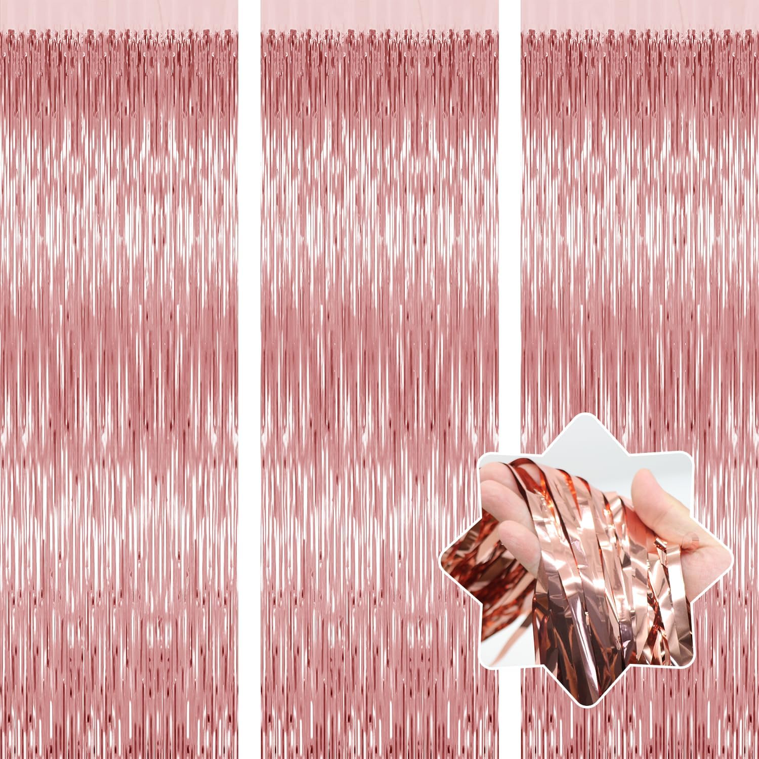 - Rose Gold Birthday Backdrop:3 packs of foil fringe curtains, the size of the foil curtain is 3.28 ft x 6.56 ft.It's long enough to fit any occasion. Please do not stick the foil curtain on uneven or stained walls to prevent it from falling off.