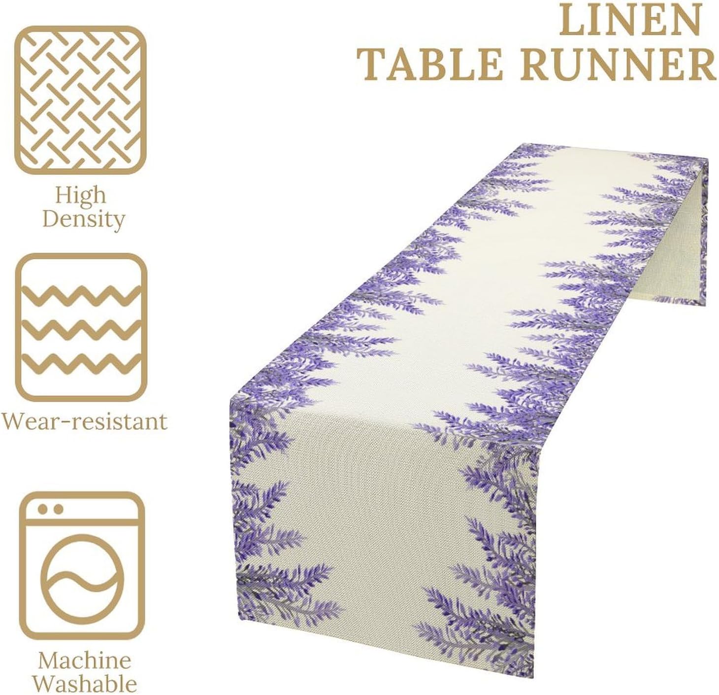 Purple Lavender Table Runner Vintage Watercolor Modern Kitchen Restaurant Decoration Suitable for Indoor and Outdoor Wedding Party Banquet Table Runner 13x90 Inch
