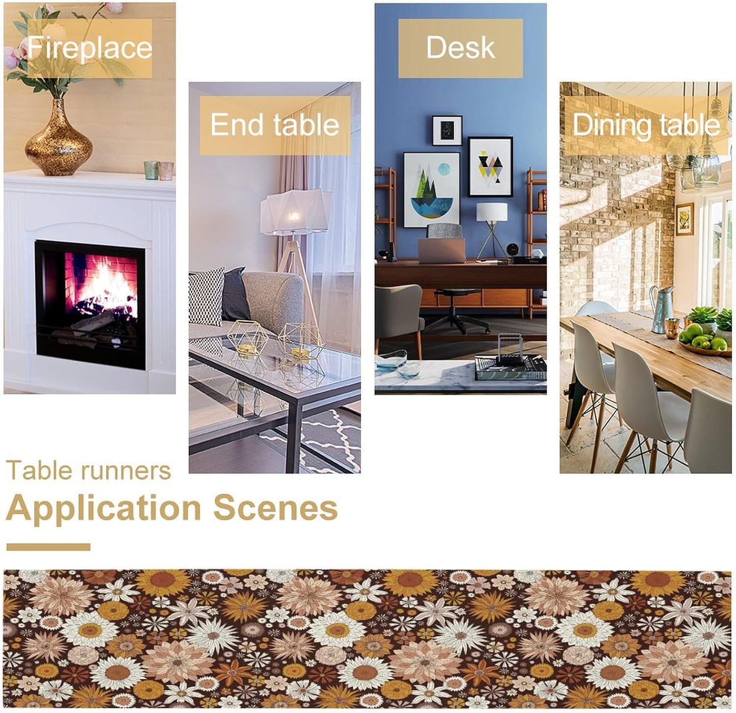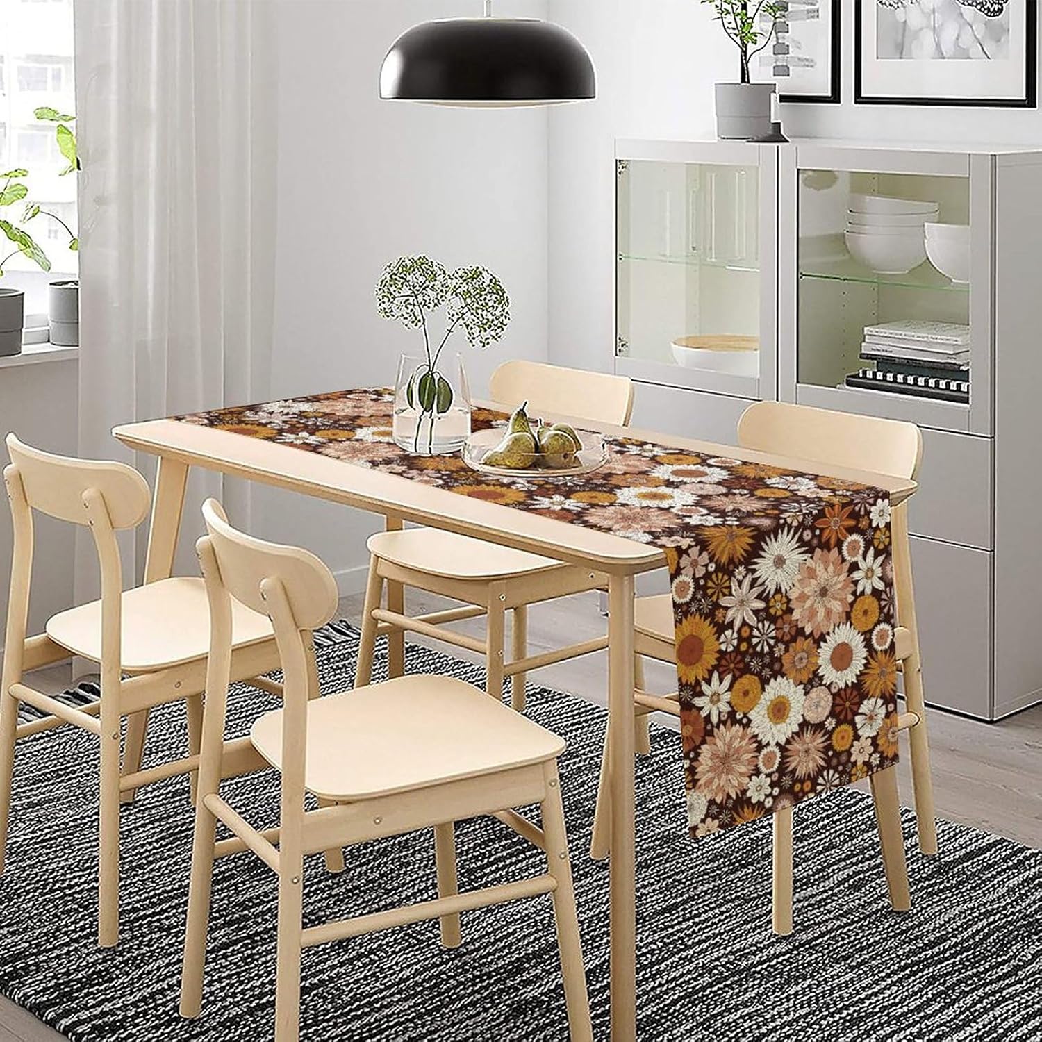 Boho Floral Table Runner, Vintage Country Farmhouse Daisy Flowers Modern Kitchen Dining Room Decoration for Indoor and Outdoor Wedding Party Banquet Table Runner 13x90 Inch