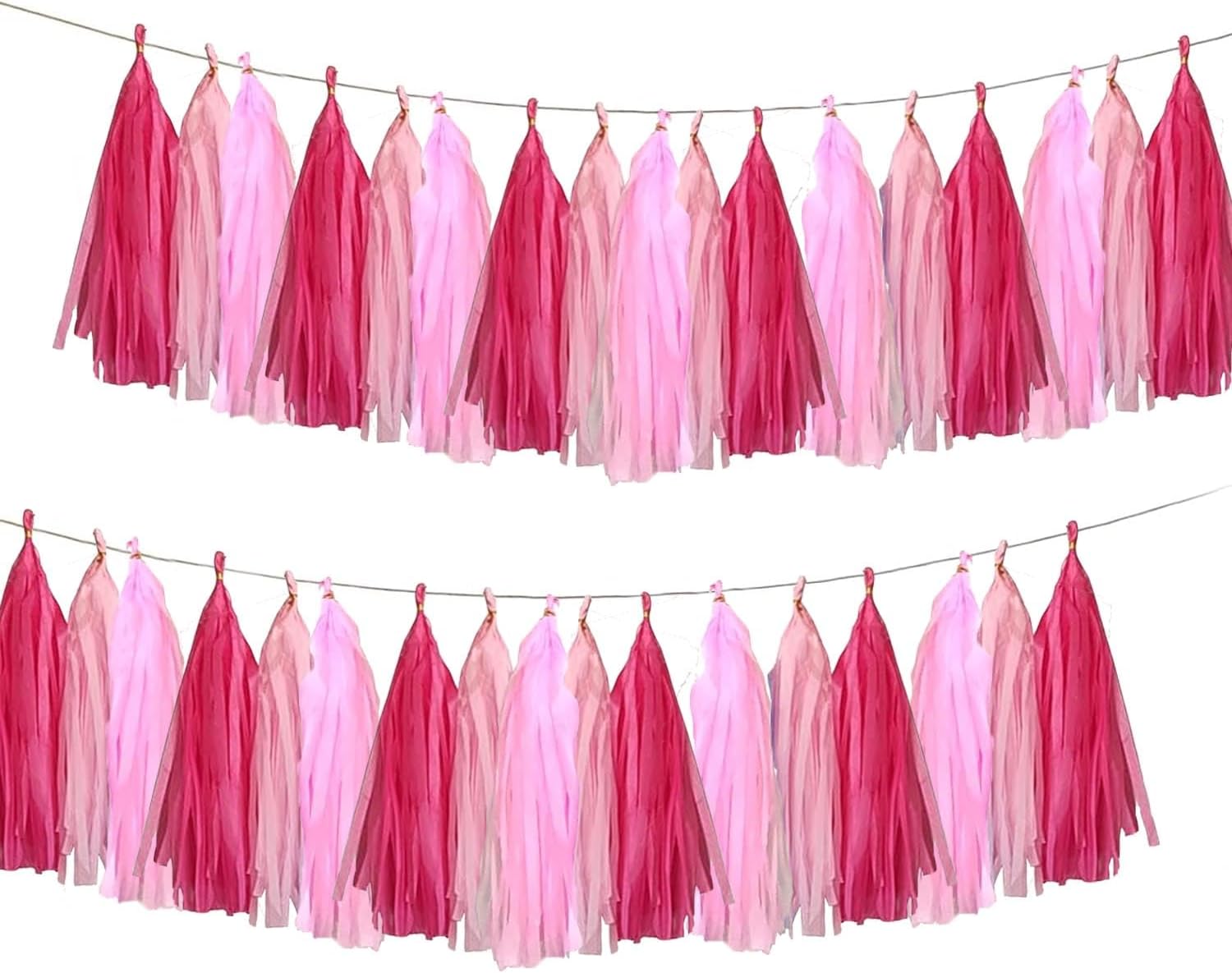 Pink Party Decorations,Hot Pink Light Pink and Pink Paper Tissue Tassel Garland Banner,15 Pcs