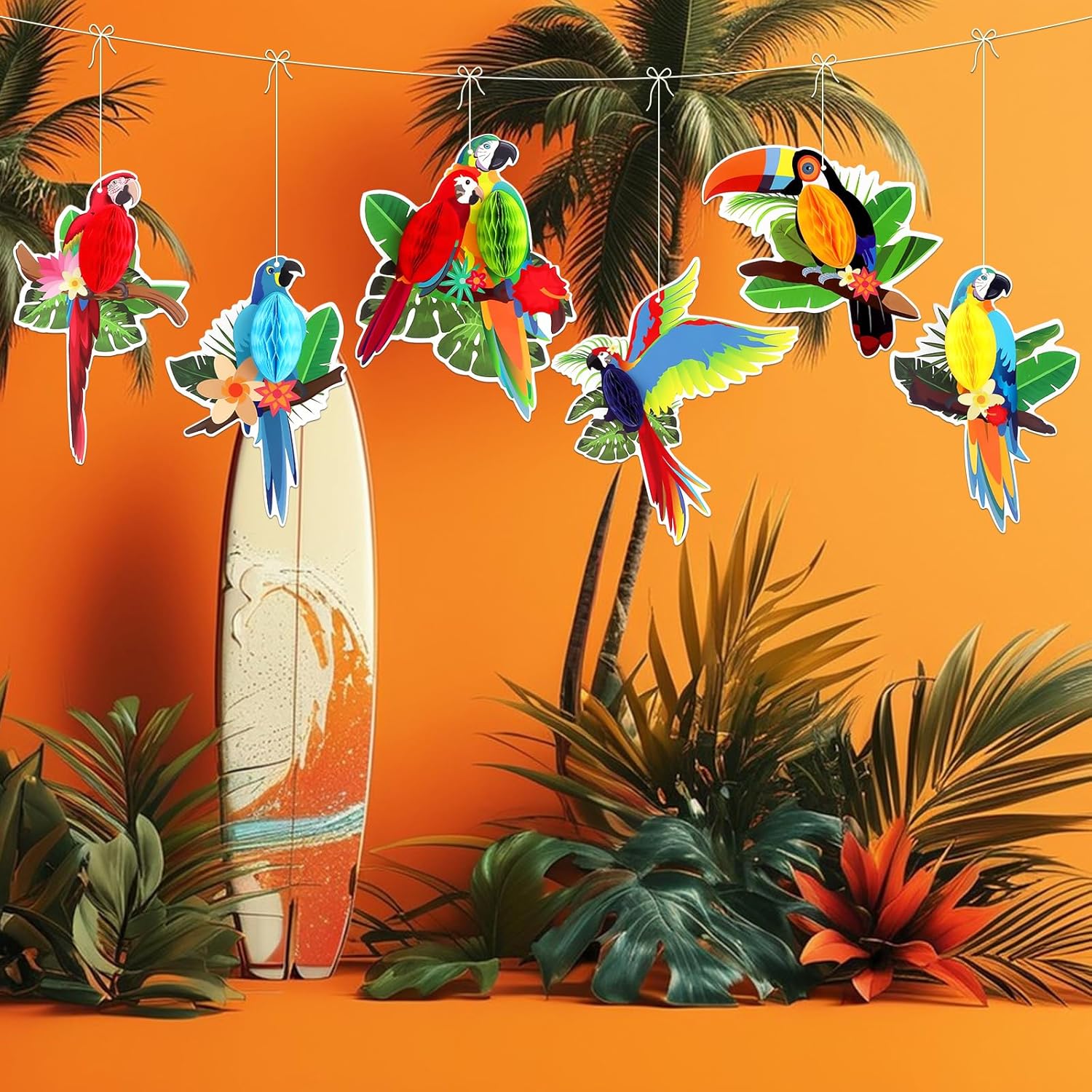 - HAWAIIAN TROPICAL DECORATIONS: You will receive 6 Pieces Hawaiian party decorations, which are 6 parrot honeycomb in different colors and postures. The images are realistic and interesting, and can be matched with various party themes. The sufficient quantity can also meet your different party decoration needs