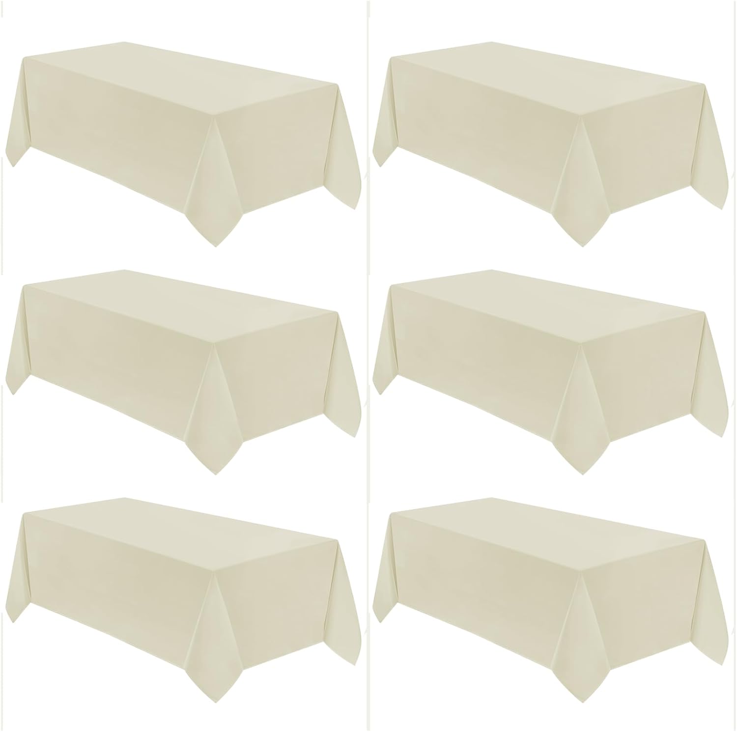 VidaFete Tablecloth 6 Pack 90 * 132inch Rectangle Table Cloth Polyester, Stain Wrinkle Resistant Polyester Dining Table Cover for Kitchen Dinning Party Wedding Rectangular Buffet Decoration(Ivory)