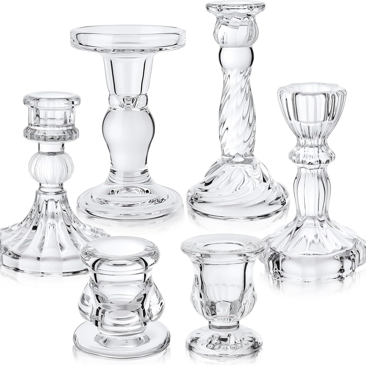 - Package Contents: you will receive 6 pieces 6 style glass candle holders in different sizes, which have different heights, smooth shapes and smooth finishes; The candlestick holder add a clean, simple, and elegant aesthetic to any space, it is suitable for a variety of candles