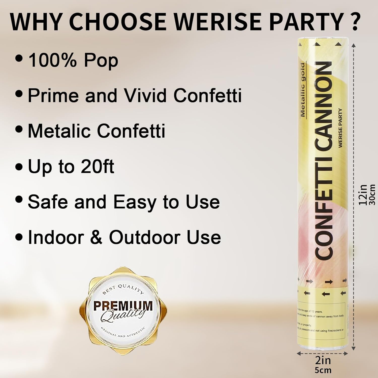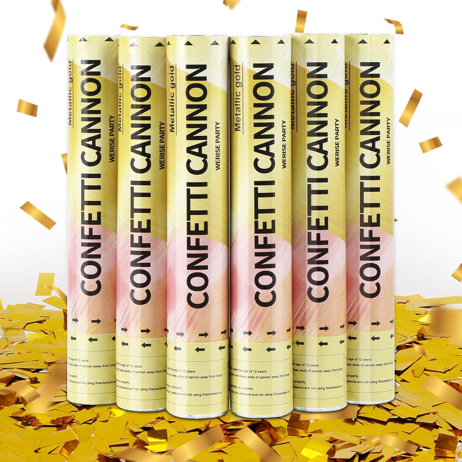 Gold Confetti Poppers Cannon, 6 Pack WERISE PARTY Gold Mylar Party Popper Shooter for Birthday, Wedding, Graduation New Year Celebration 12IN
