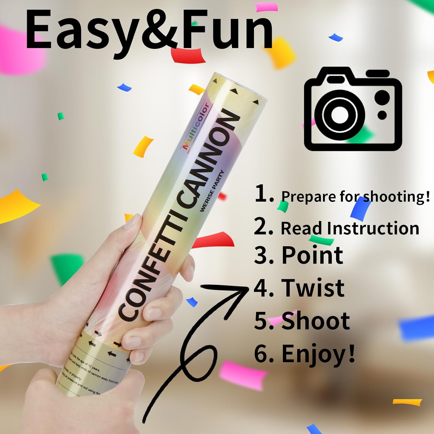 Biodegradable Confetti Poppers Cannon, 6 Pack WERISE Party Multicolor Party Poppers Confetti Shooters for Birthday, Wedding, Graduation Celebration New Year 12 Inch