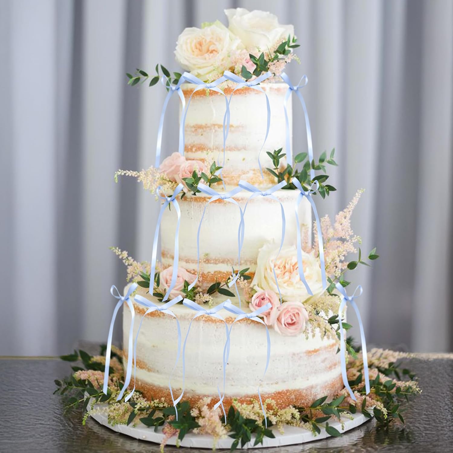 Ephlyn 30Pcs Bow Cupcake Toppers Valentine's Bowknot Ribbons Coquette Bow High Footed Cup Balloon Wall Party Decorations Cake Dessert Picks Birthday Wedding Party Supplies Blue