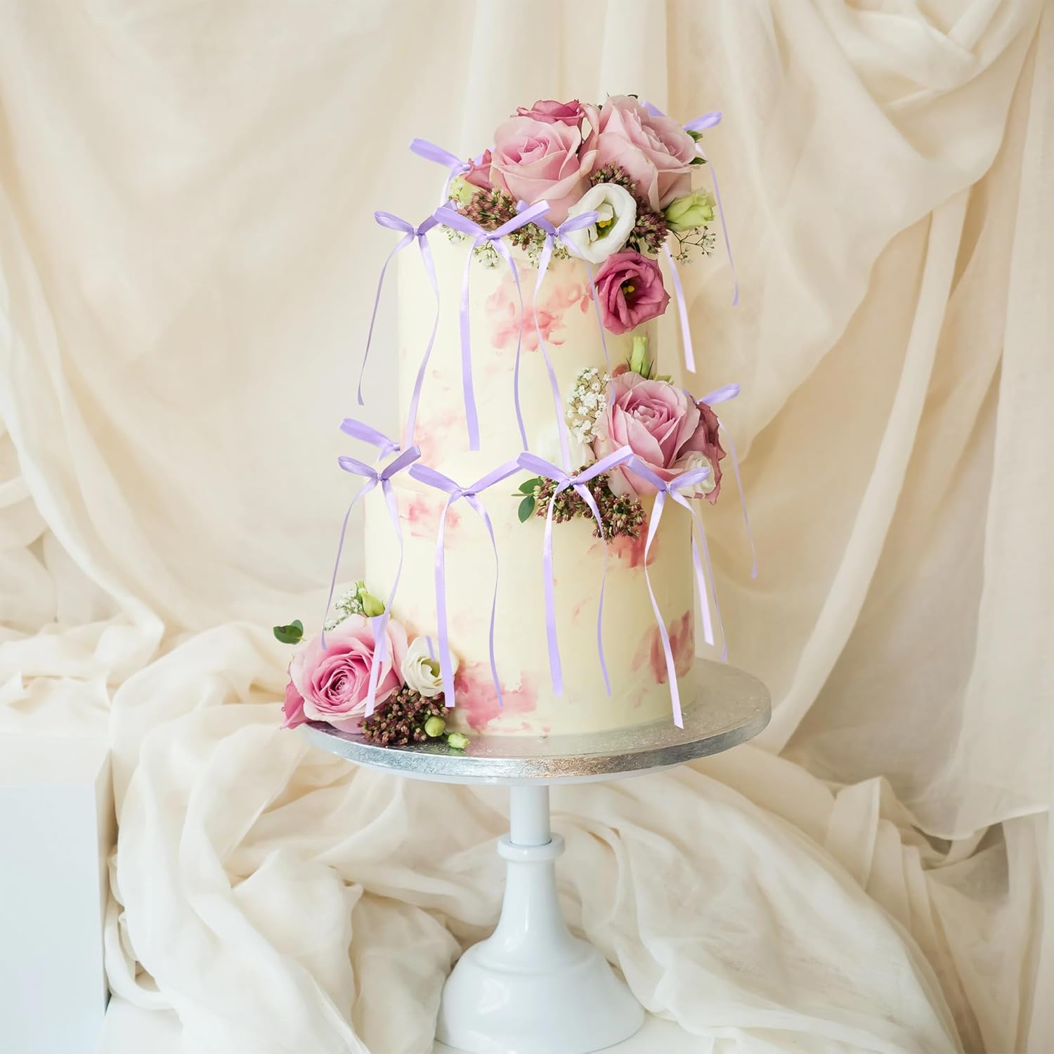 Ephlyn 30Pcs Bow Cupcake Toppers Valentine's Bowknot Ribbons Coquette Bow High Footed Cup Balloon Wall Party Decorations Cake Dessert Picks Birthday Wedding Party Supplies Purple