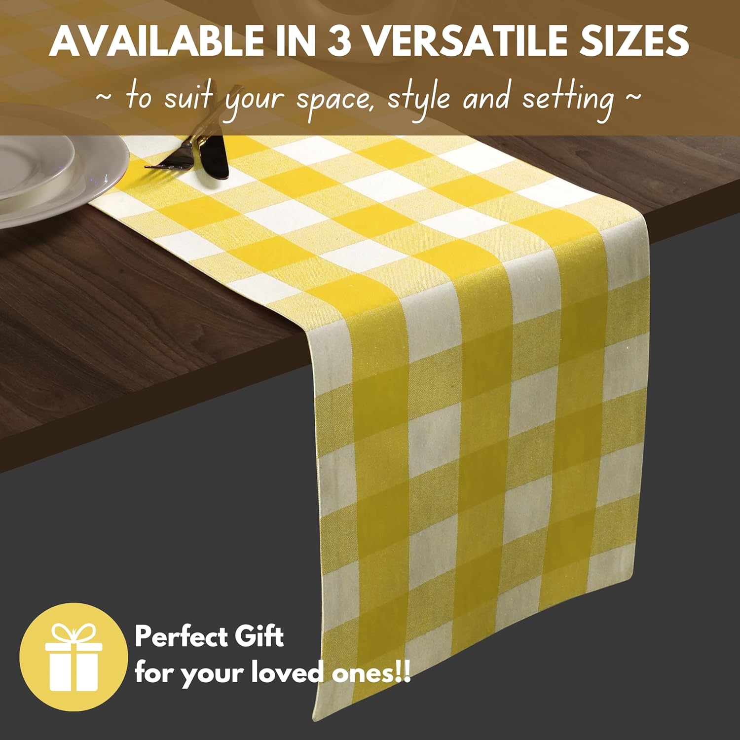 Native Fab Table Runner Buffalo Check Plaid 100% Cotton - 13x72 Inches Kitchen Dining Table Decoration for Indoor Outdoor Farmhouse Home Party Decor - Lemon Yellow and White