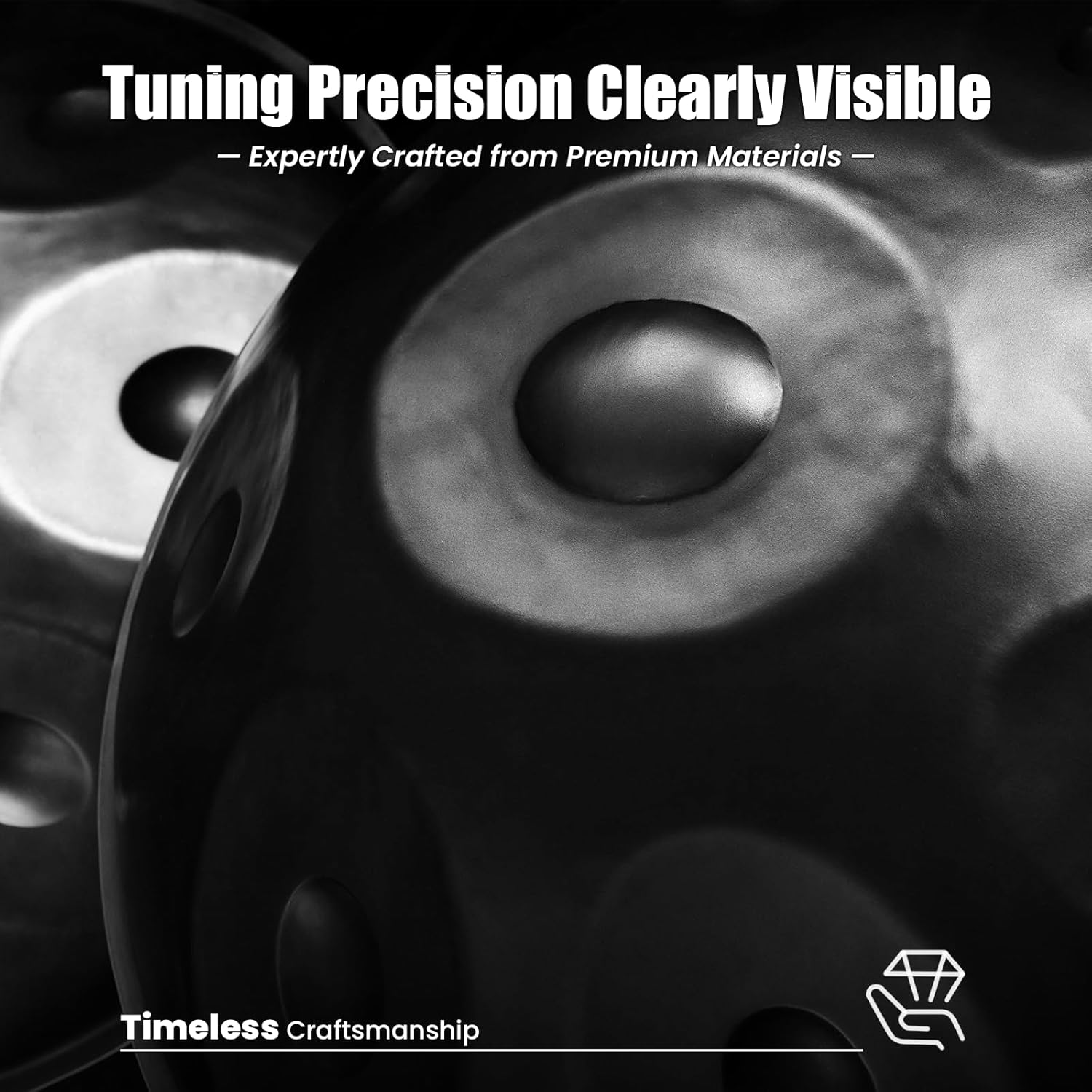 - 【Professional Craftsmanship】Masterfully created by expert craftsmen using advanced high-temperature heat treatment techniques, each handpan is carefully tuned by professional musicians. The 1.2mm thick premium steel ensures instrument durability and corrosion resistance. From material selection to sound calibration, every stage is dedicated to achieving exceptional musical quality for music enthusiasts