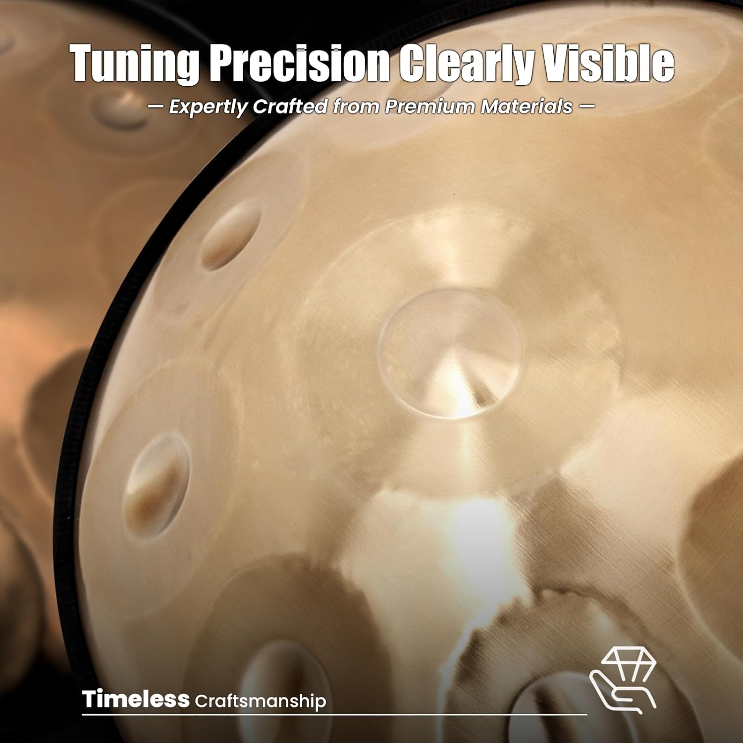 - 【Professional Craftsmanship】Masterfully created by expert craftsmen using advanced high-temperature heat treatment techniques, each handpan is carefully tuned by professional musicians. The 1.2mm thick premium steel ensures instrument durability and corrosion resistance. From material selection to sound calibration, every stage is dedicated to achieving exceptional musical quality for music enthusiasts