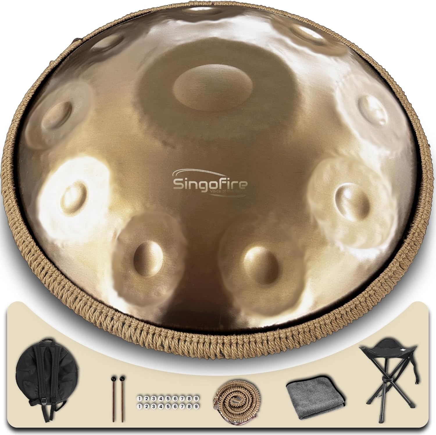"SINGOFIRE" Handpan Drum, Handpan Drums for Adults, 22-Inch 432Hz D Minor Kurd Handpan, HandPan Instrument (Gold-10Notes(432HZ), 22-Inch)