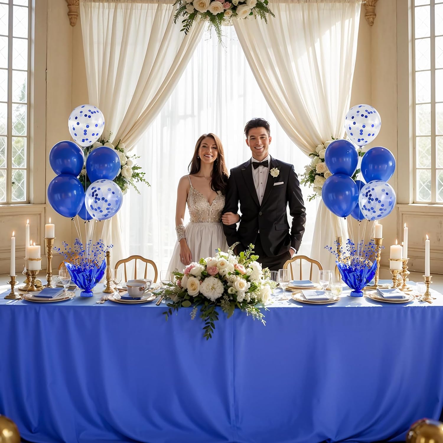 - Blue Balloon Centerpiece Kit Includes: 6 reusable blue balloon stands for table (including 6 blue foil star spray bases, 18 sticks, 18 stick connectors, and 36 cups) and 36 12-inch latex balloons, providing everything you need to create stunning table centerpieces