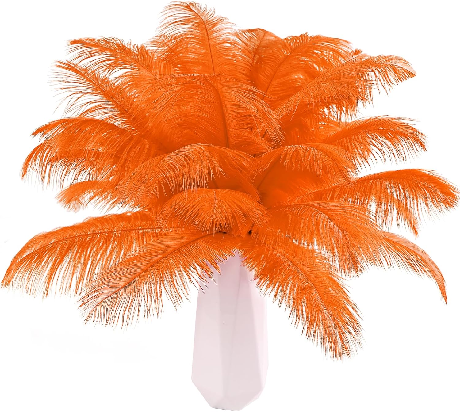 THARAHT Orange Ostrich Feathers 12pcs Natural Bulk 10-12Inch 25cm-30cm for Crafts Wedding Party Centerpieces Halloween and Home Decoration Feathers