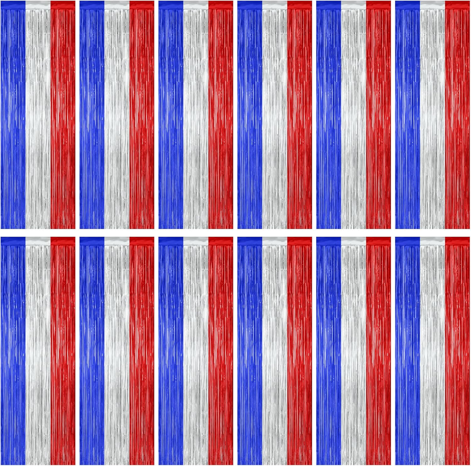 12 Pack 4th of July Decorations, 3.28 FT x 7.05 FT Patriotic Tinsel Backdrop, Metallic Blue Silver Red Fringe Curtains Party Streamer Foil Backdrop, Independence Day Party Supplies Patriotic Decor
