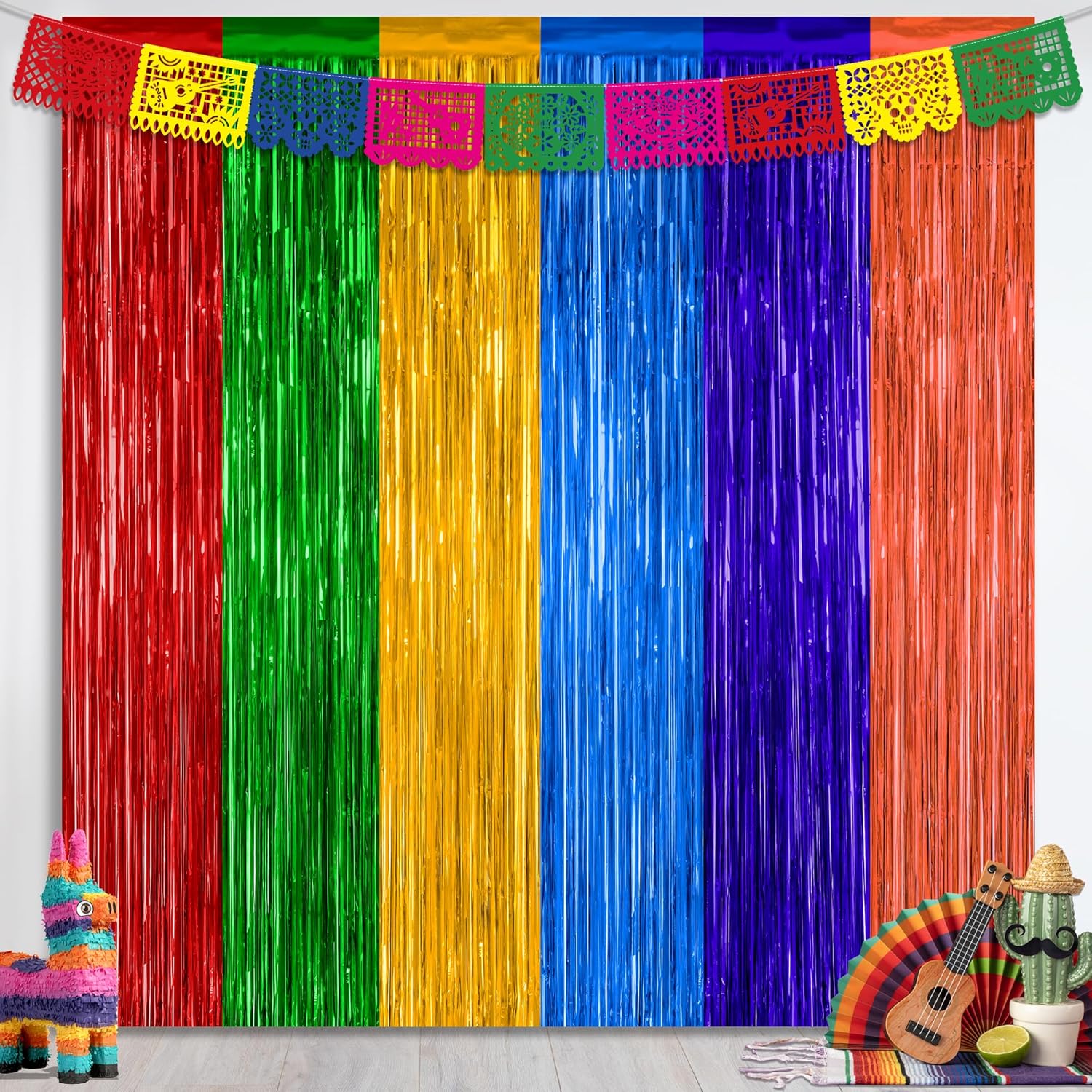 - Package Includes: This set includes 2 pcs rainbow foil curtains in Mexican colors, each measuring 3.28 ft x 7.05 ft, feel free to cut them to your desired length.