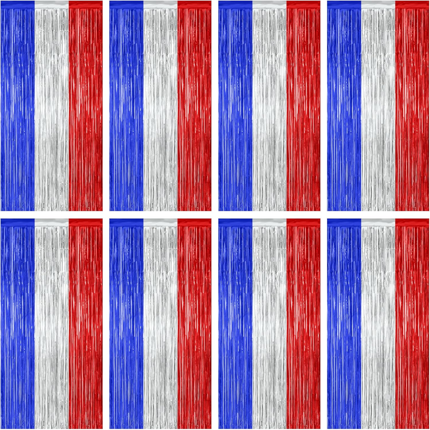 - Package Includes: This set includes 8 pcs patriotic style foil curtains consisting of blue, silver and red colors, each measuring 3.28 x 7.05 feet and can be cut to your desired length.