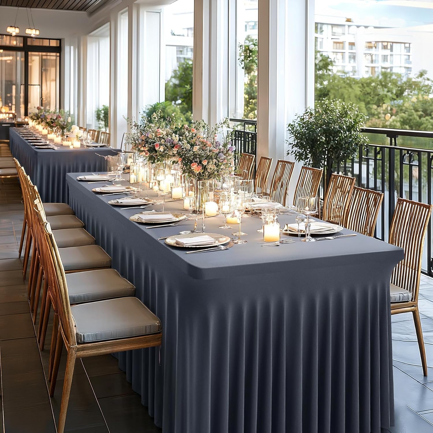 Wish Care 6 Pack Gray Spandex Table Clothes for 6 Foot Rectangle Tables, 6FT Wrinkle Free Fitted Tablecloths Ruffles Design Table Cover for Party, Banquet, Wedding and Events