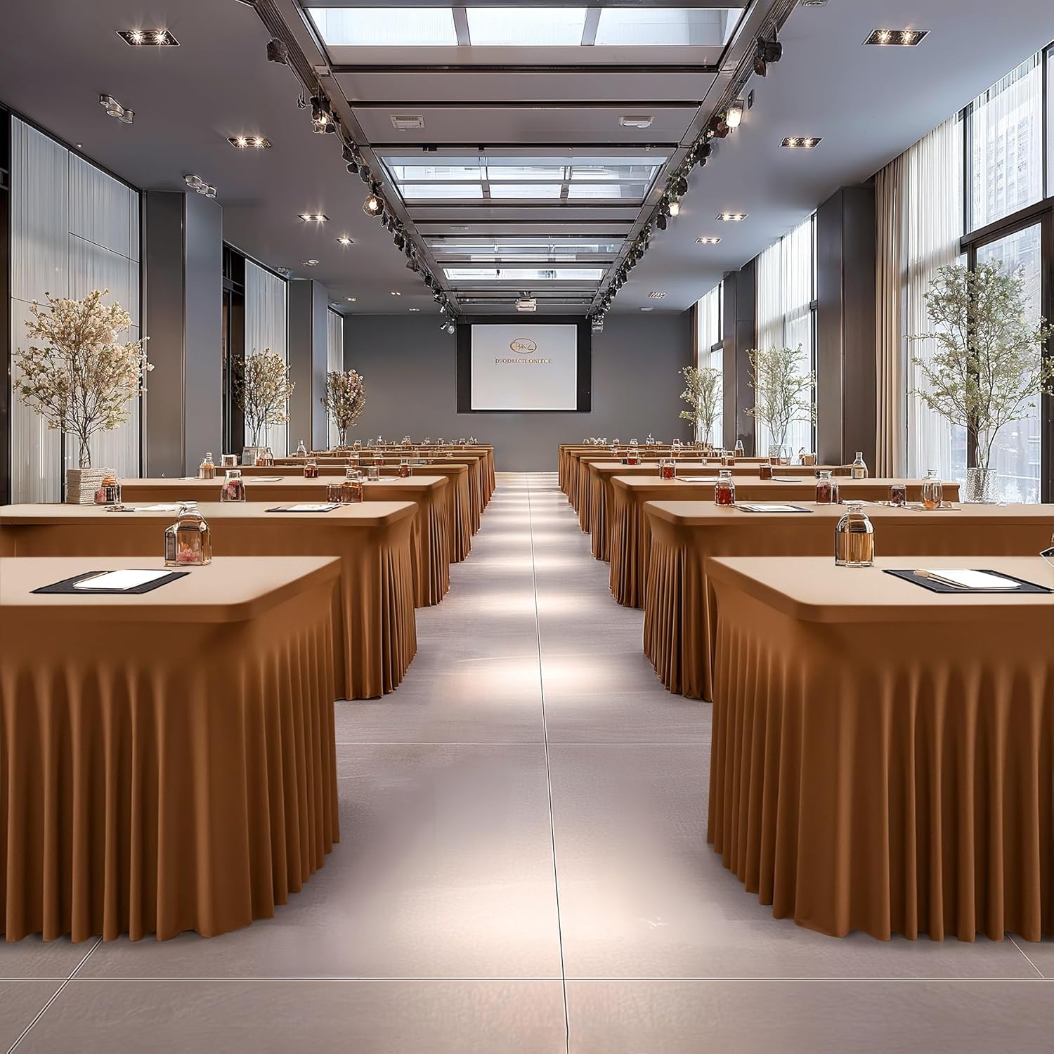 Wish Care 2 Pack Brown Spandex Table Clothes for 8 Foot Rectangle Tables, 8FT Wrinkle Free Fitted Tablecloths Ruffles Design Table Cover for Party, Banquet, Wedding and Events