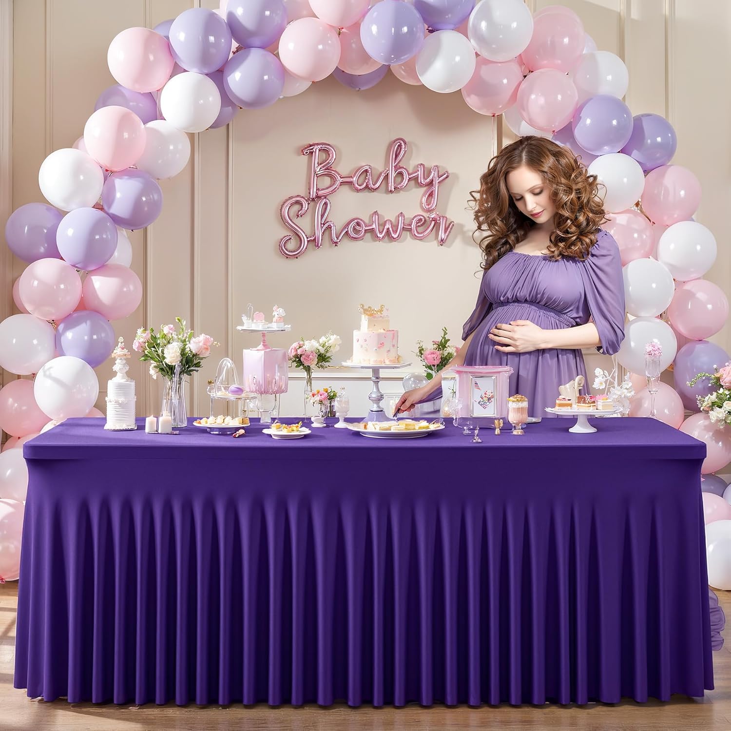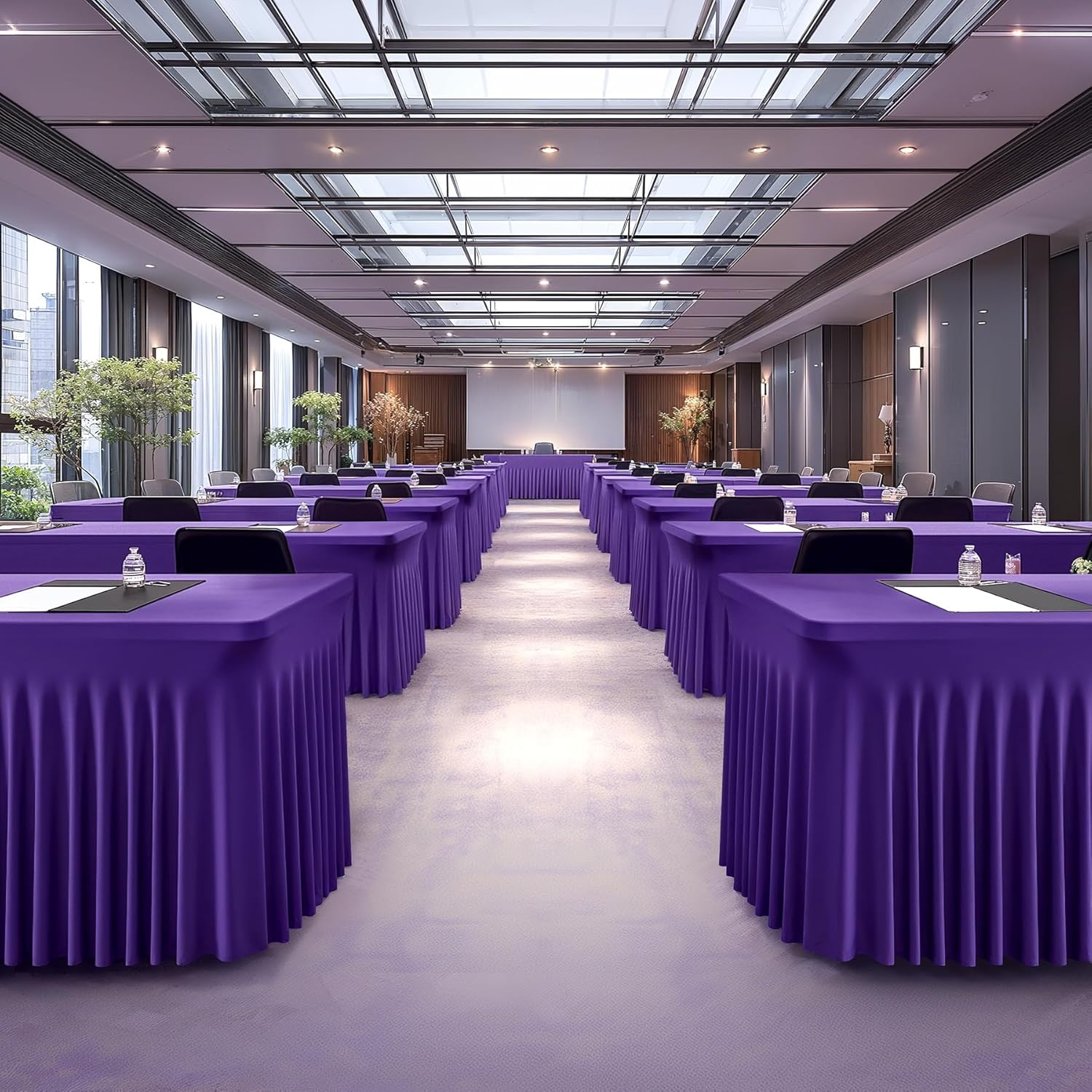 - 【Fitted Tablecloth Package】- 2 Piece Spandex Table Covers with Table Skirt. Material: Wrinkle Free and Stretchy Fabric. Color: Dark Purple. Size: 48"L X 24"W X 29"H. Fitted for 4 foot rectangle tables. Change your table into a new look in few seconds with our tablecloths