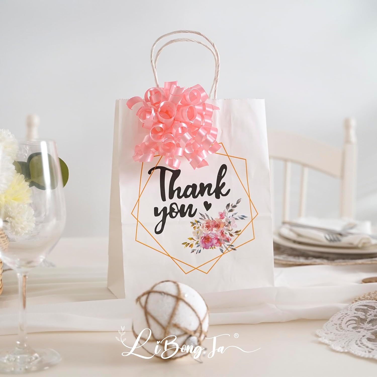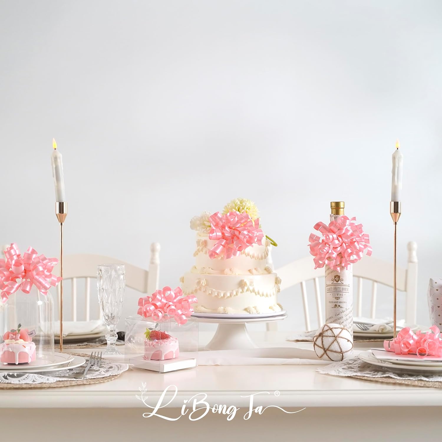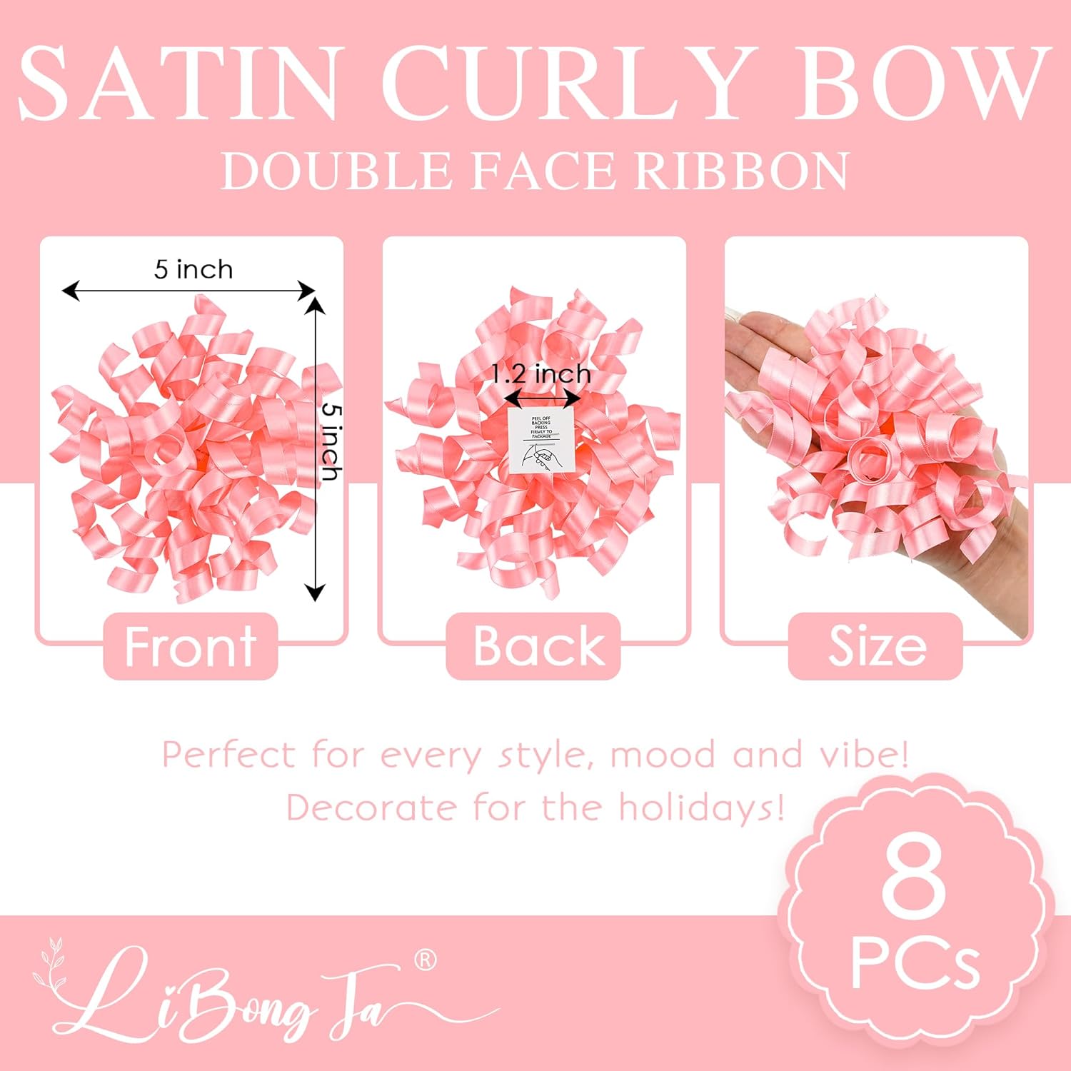 5 Inch Baby Pink Gift Bow Curly Ribbon Bows Set of 8, Double Faced Satin Ribbon Bow Premade Self Adhesive Bow Decorations for Party, Wedding, Holiday, Bows for Crafts, Wine Bottle, Presents