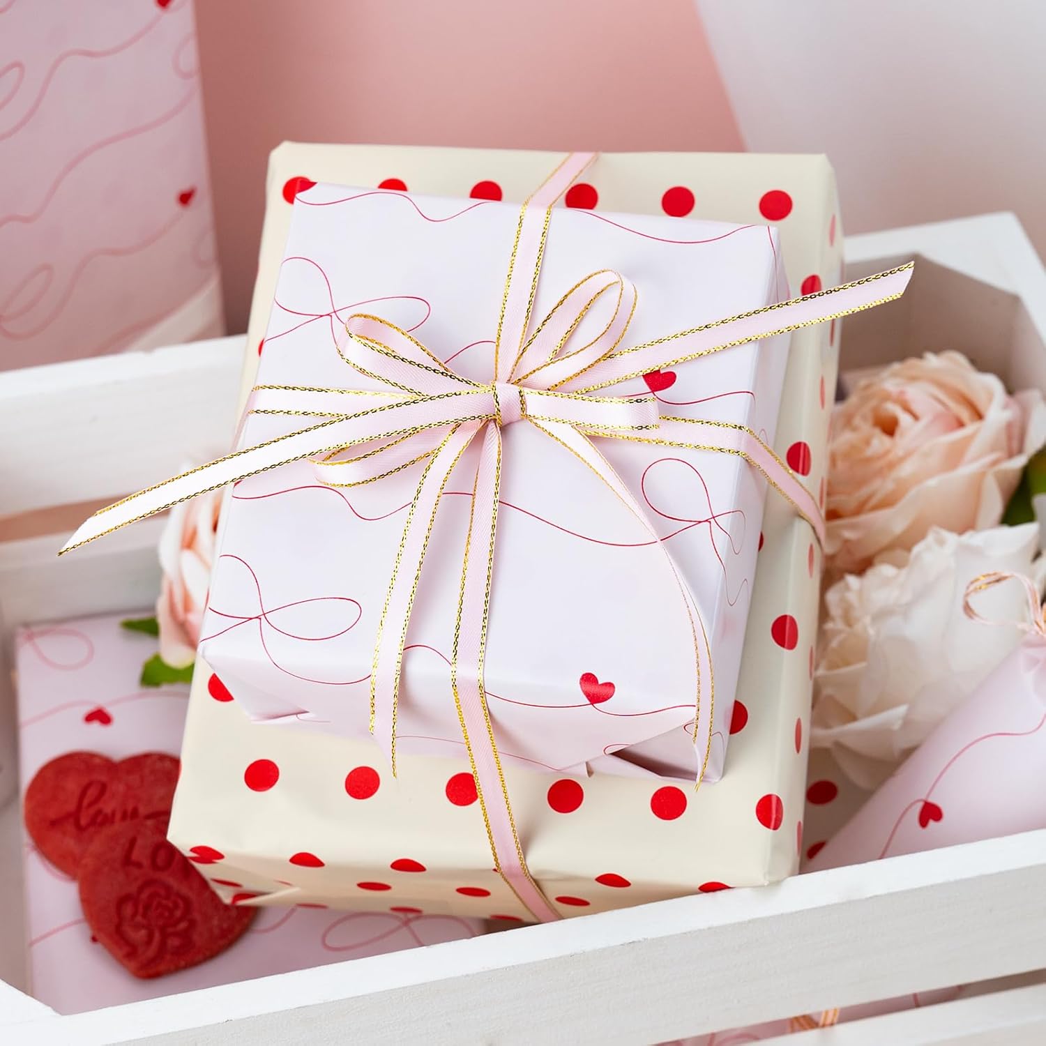 - Reversible Design: The gift wrap is the specil red polka dot and suitable for all kinds of packaging.One side features red polka dots that catch every eye, while the reverse offers a soft, elegant bowknot & heart Gift Wrap—perfect for crafting hand-wrapped gifts that stand out.