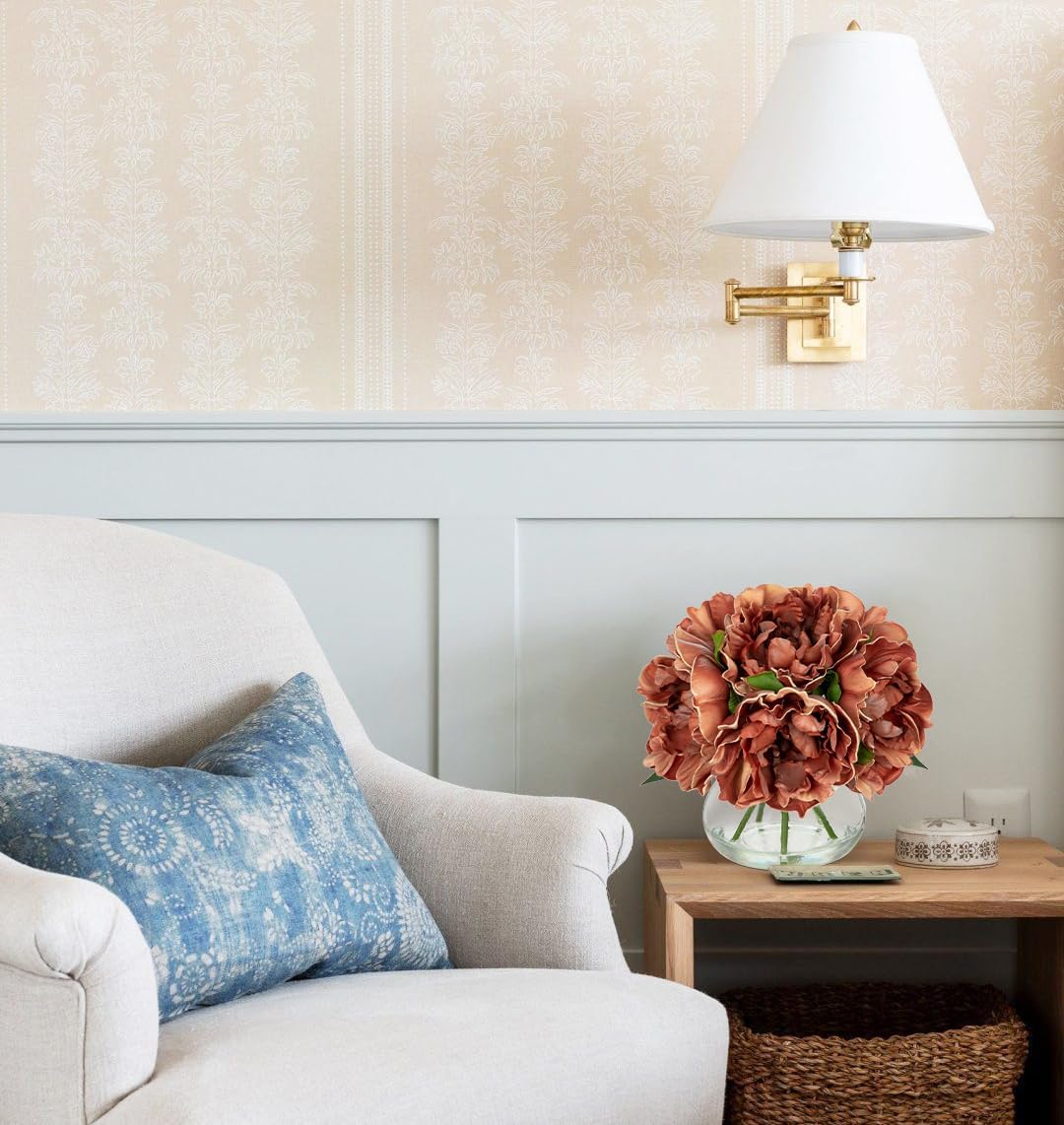 Hollyone Coffee Peonies with Vase Fall Flowers Artificial for Decoration Faux Flower Peony Fake Flowers Silk Flower Arrangements in Glass Vase with Faux Water Centerpiece Fall Decorations for Home