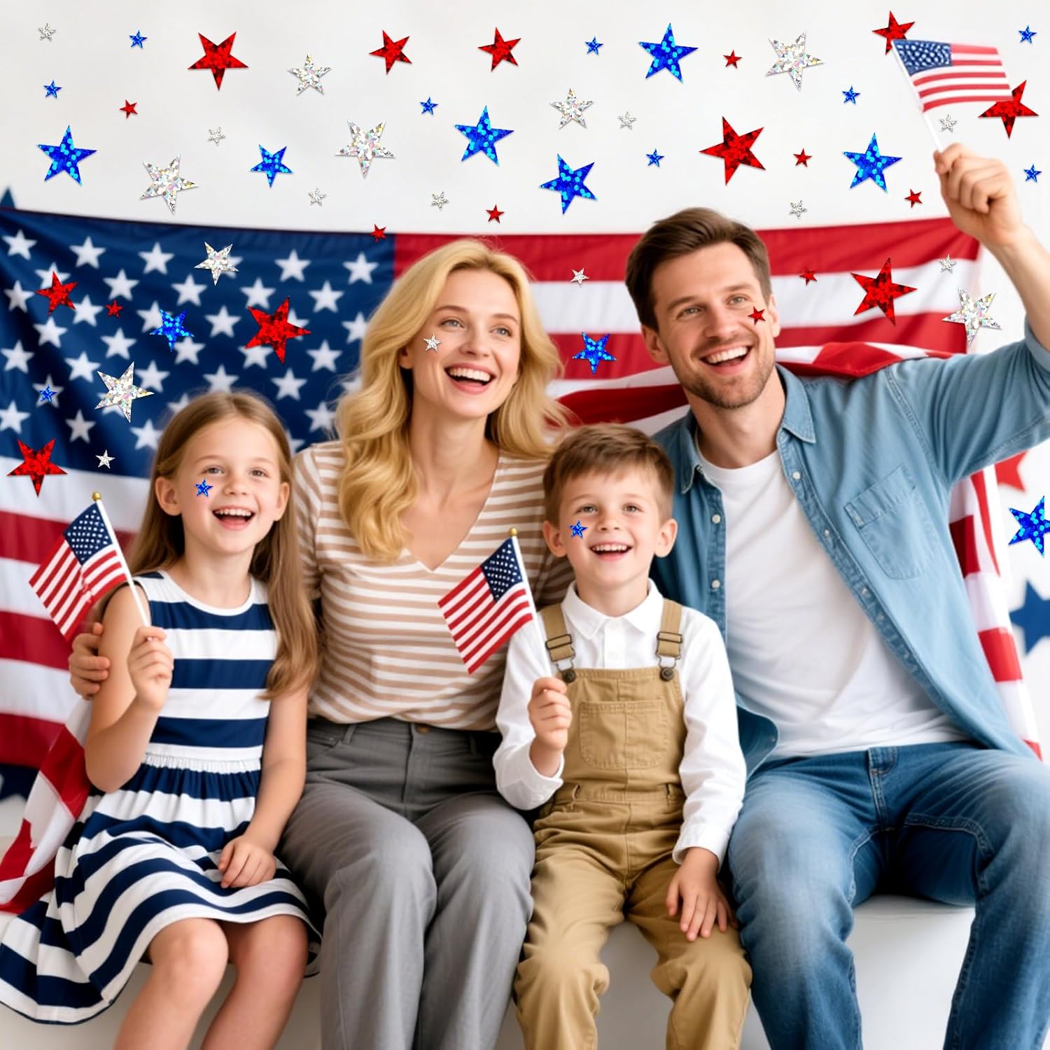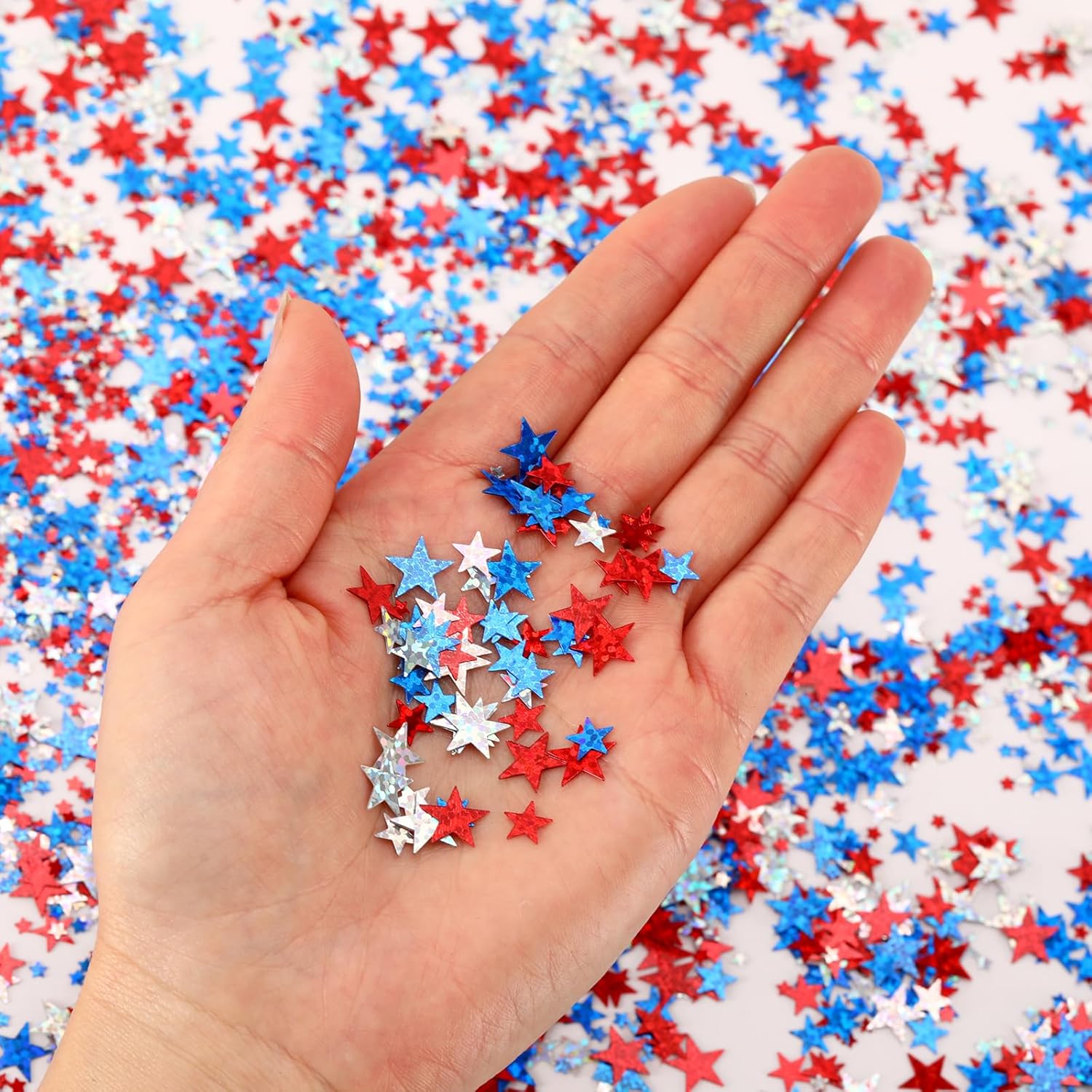 - 4th of July Confetti Decorations: Our 4th of July confetti are designed in patriotic theme with red, white and blue colors, which has a unique flashing effect on the surface of each five-pointed star. The glitter patriotic confetti is the ideal decoration for all your Independence Day parties. Very suitable as confetti for the dinner table of Independence Day party, full of festival atmosphere