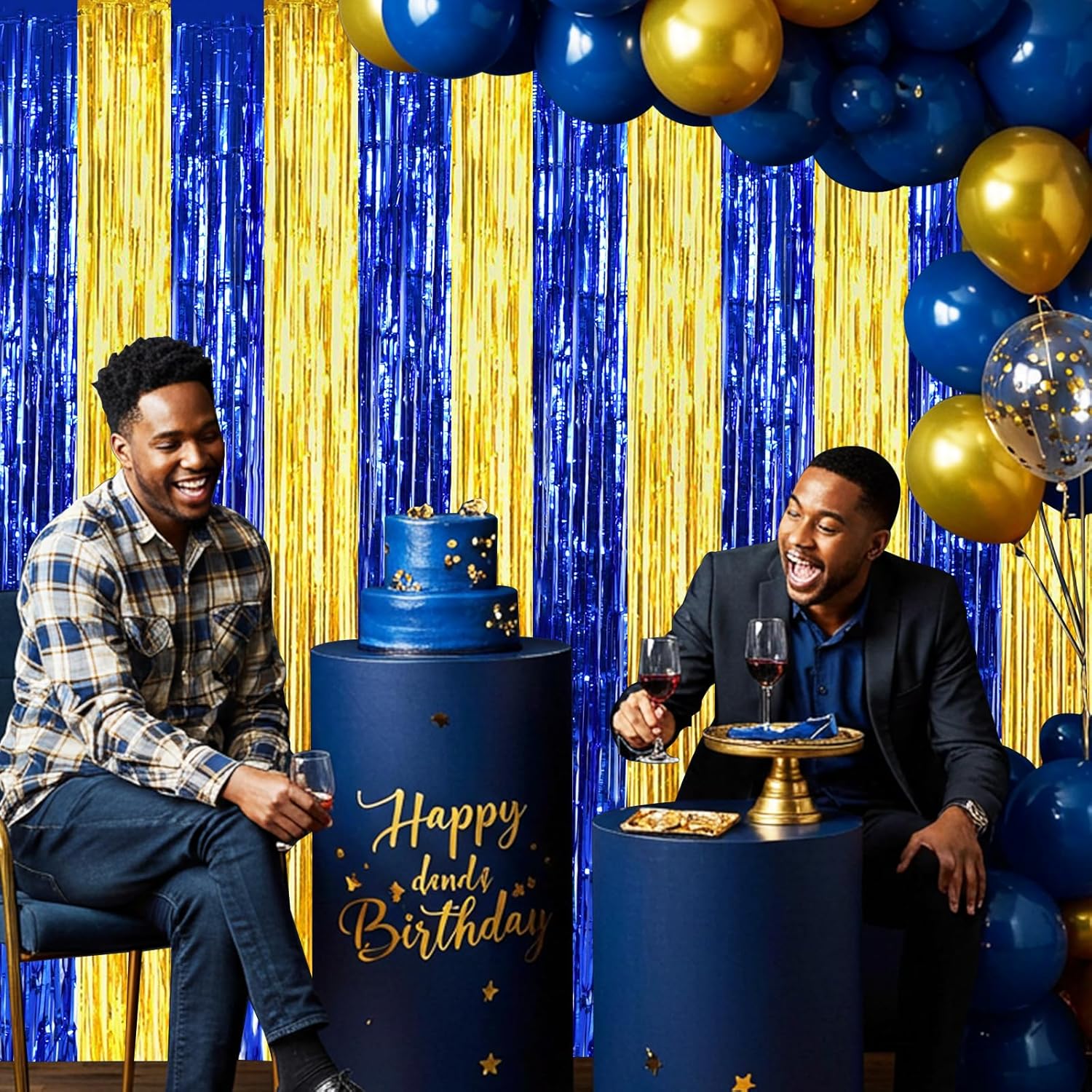 BEISHIDA 2Pcs Blue Gold Door Streamers Congrats Grade 2025 Decoration Backdrop Foil Fringe Tinsel Party Streamers Curtains Backdrops for Birthday 2025 Graduation Baby Shower(3.28 ft x 6.56 ft)