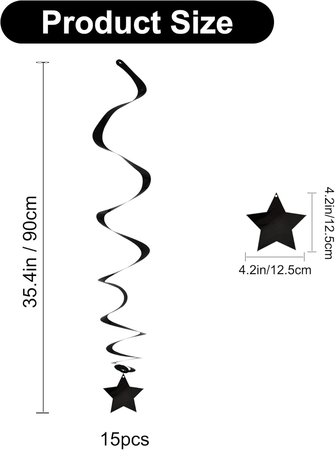 - 【Package include】A total of 15 pcs hanging swirl decorations, including 15 double swirls and 15 swirls with PVC star. There are 15 strings in total, each of which is connected with a double swirls and a PVC star. Flexible swirls, hanging length can extend to approx 36"/91cm long.