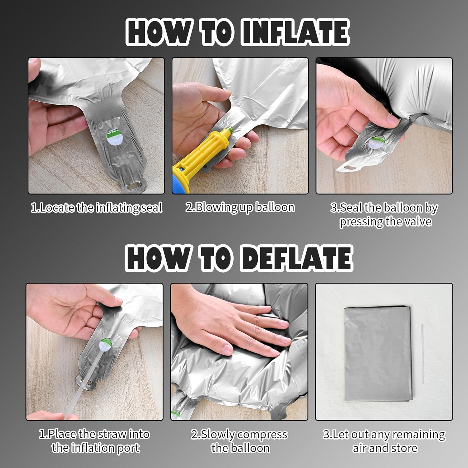 - Reusable Foil Balloons: The black silver star balloon set is completely reusable. Avoid excessive friction and sharp objects when using it. Use a straw to deflate and flatten it after event, and it will still be a shining decoration at the party next time
