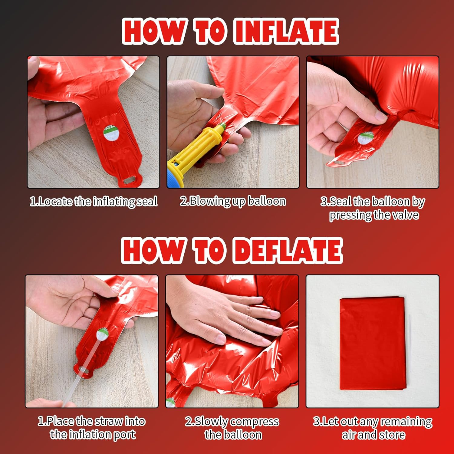 - Reusable Foil Balloons: The black red star balloon set is completely reusable. Avoid excessive friction and sharp objects when using it. Use a straw to deflate and flatten it after event, and it will still be a shining decoration at the party next time