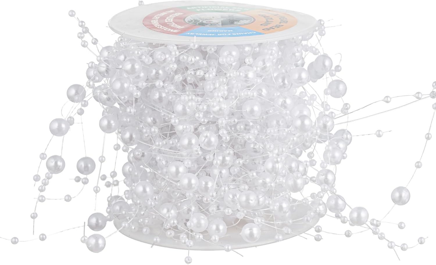 13Feet Pearl String Spool Roll for Floating Candles Faux Pearls Strands Garland for Vase Filler Wedding Centerpiece Christmas Table Decor (White)