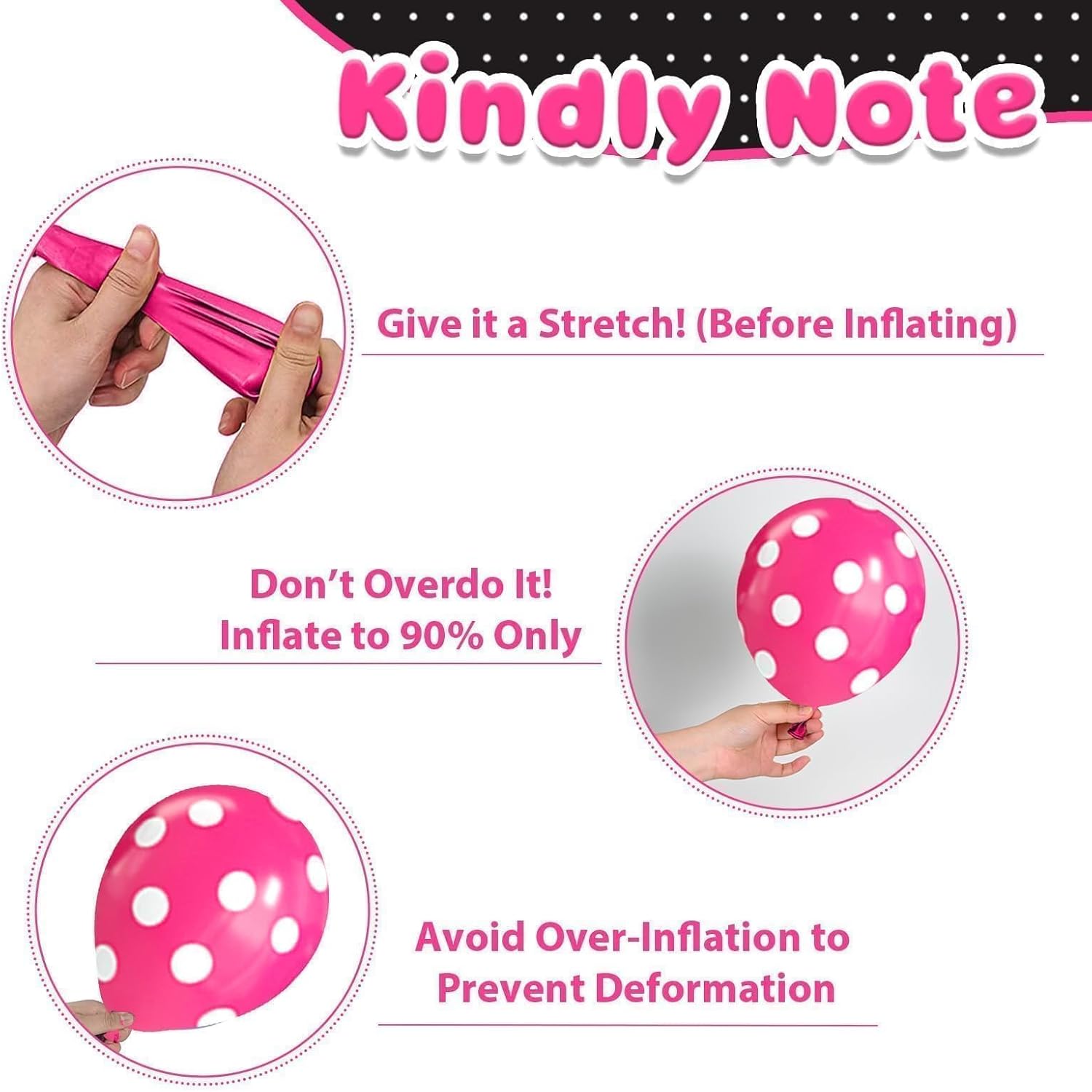 - Premium Quality Balloons: These pink black balloons are crafted from premium latex, offering excellent elasticity and durability. they can be filled with either helium or air, and when tied securely, they'll stay inflated for several days! With their vibrant colors, they are the ideal choice for adding a fun, colorful touch to any party or event.