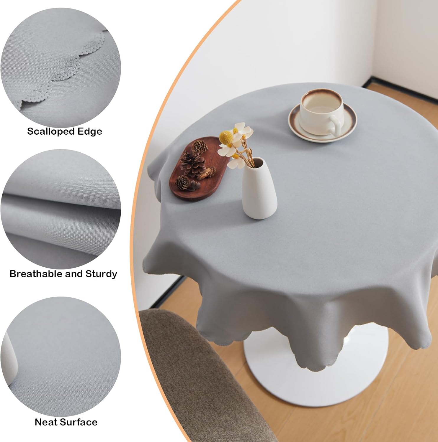 Small Round Grey Tablecloth 36 Inch Polyester Fabric Washable Table Cover Decorative Wrinkle Resistant Solid Color Table Cloth for Dining Party Wedding Camping