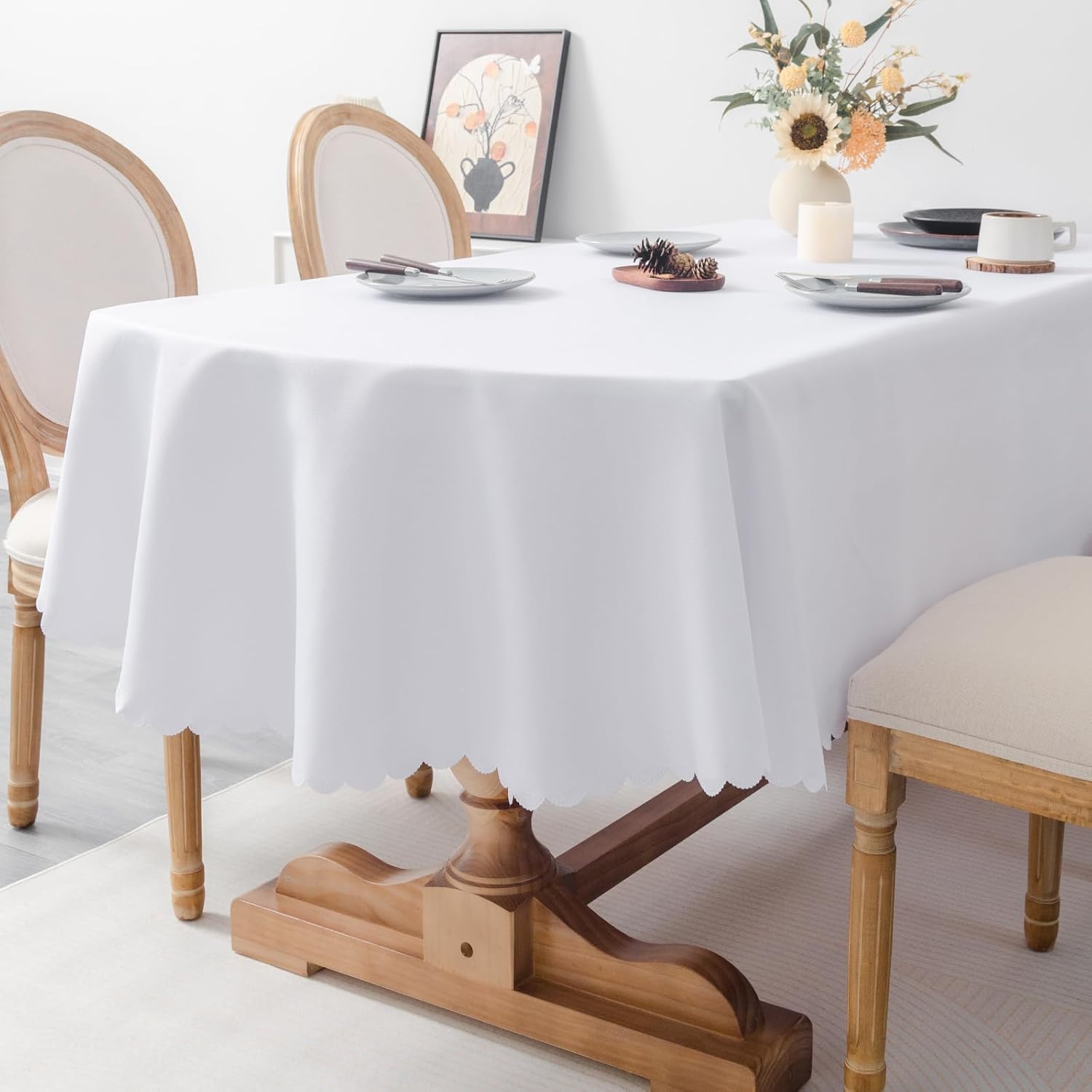 - Proper Size: The 60 x 84 inch oval scalloped edge tablecloth fits tables from 36 x 60 inches to 44 x 68 inches, each end drops approximately 8 inches to 12 inches. Your package will include 1 tablecloth.