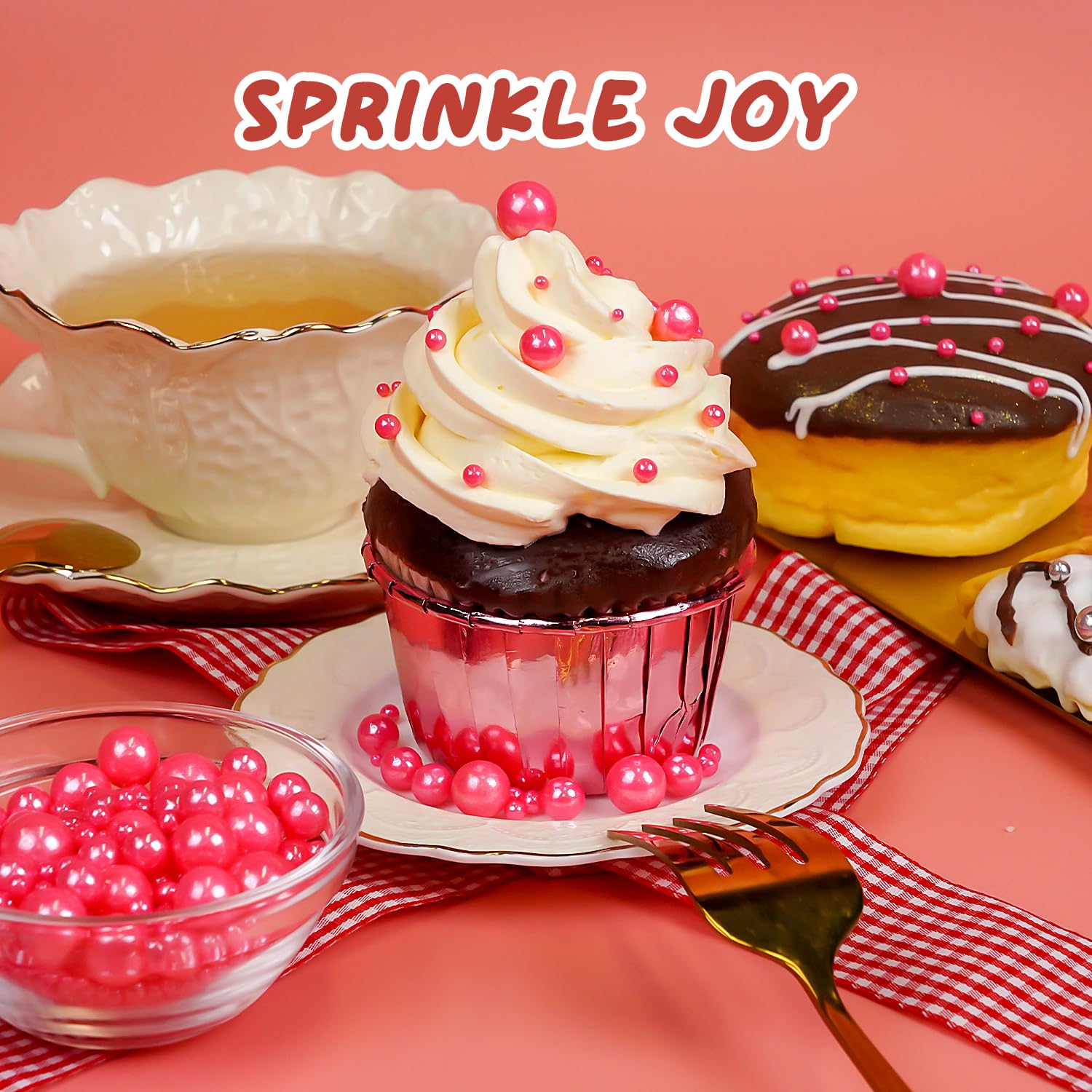 - Safe & Certified Pearls: Food-grade pink pearls sugar sprinkles made with non-GMO ingredients, 0% preservatives. Kosher/Halal-certified in facilities with no allergens (soy/nut/dairy). Tamper-proof sealed for safety.