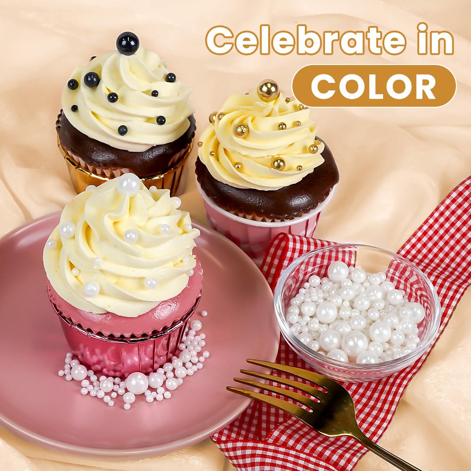 - Safe & Certified Pearls: Food-grade white pearls sugar sprinkles made with non-GMO ingredients, 0% preservatives. Kosher/Halal-certified in facilities with no allergens (soy/nut/dairy). Tamper-proof sealed for safety.