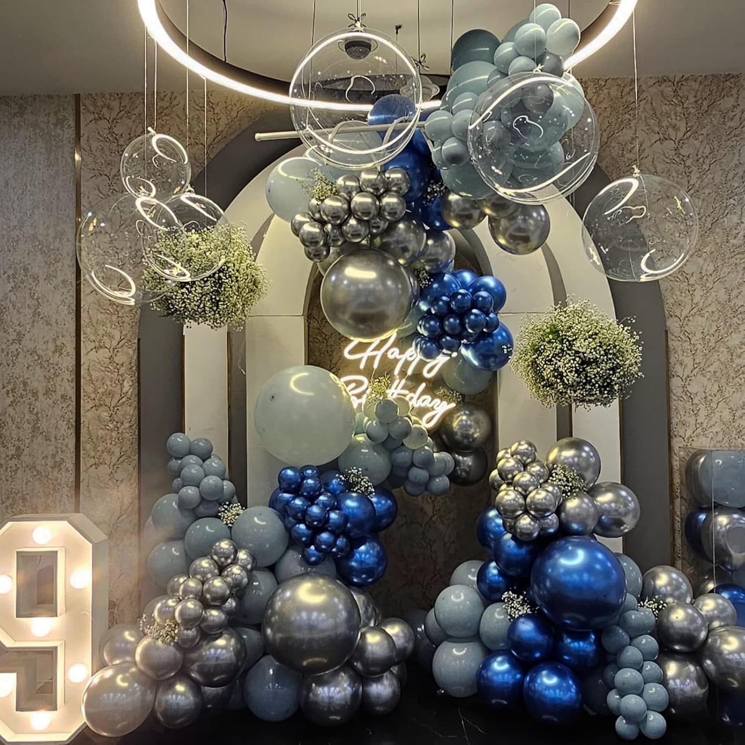 - Versatile Usage: These retro blue gold latex ballons are suitable for all kinds of parties. Whether it's a graduation party, milestone birthday party, New Year's Eve party, wedding, engagement party, space-themed party, or baby shower, these elegant muted tones will enhance your themed celebration