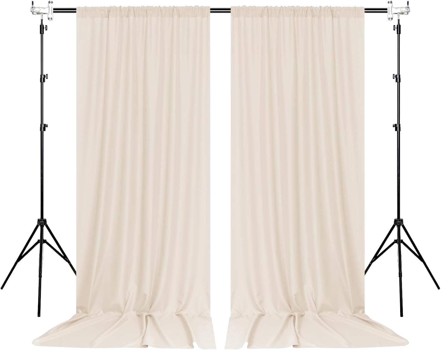 MEETSKY Beige Backdrop Curtains 10ft x 10ft for Wedding Birthday Baby Shower Photography Backdrop Fabric Curtains Drapes Home Window Decorations Rod Pocket Window Drapes,5ft x 10ft, 2 Panels