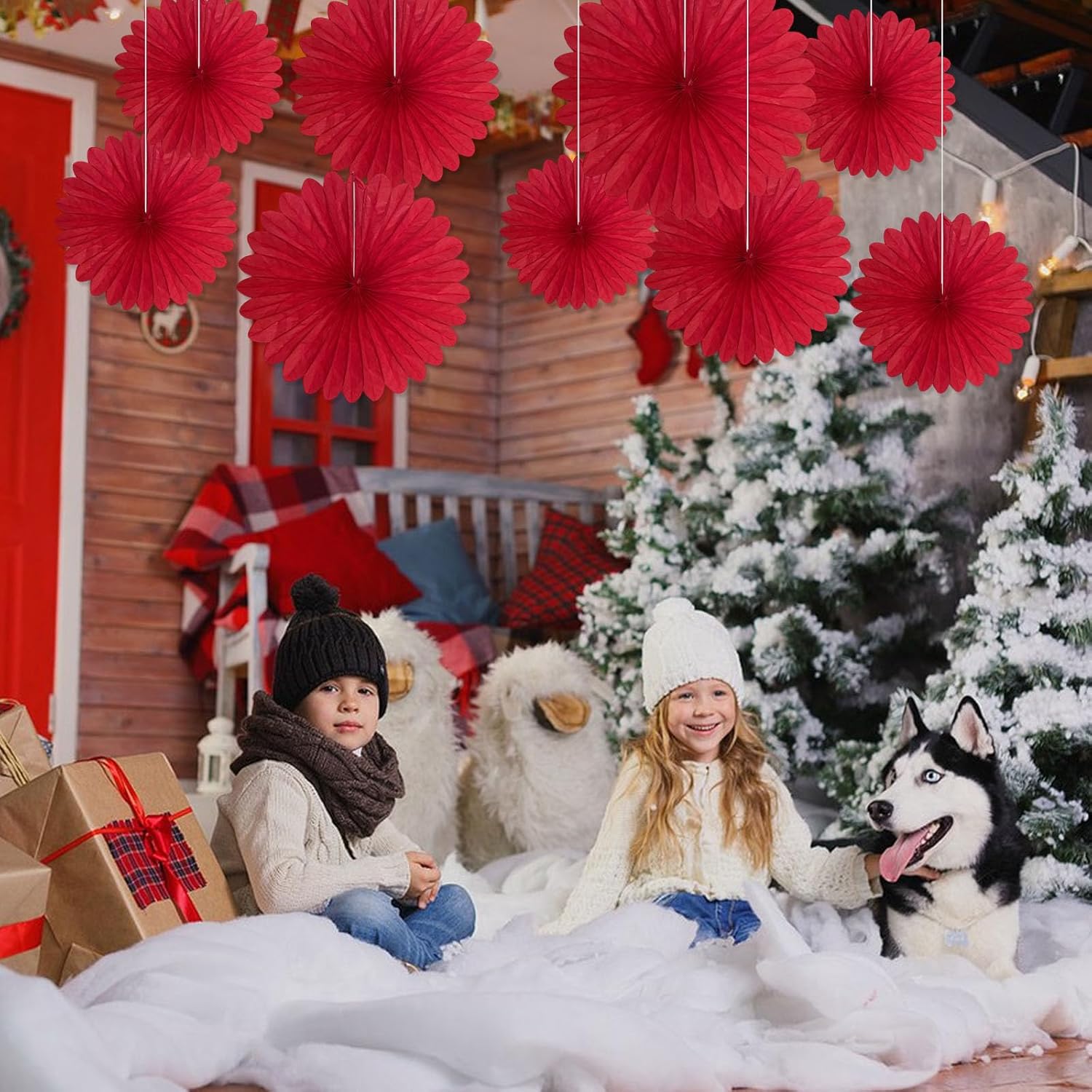 20 Pcs Red Hanging Paper Fan, Round Paper Fans Decorations Set for Weddings, Birthdays, Engagement, Bridal Shower, Baby Shower Event, Graduation, Party Supplies Decor