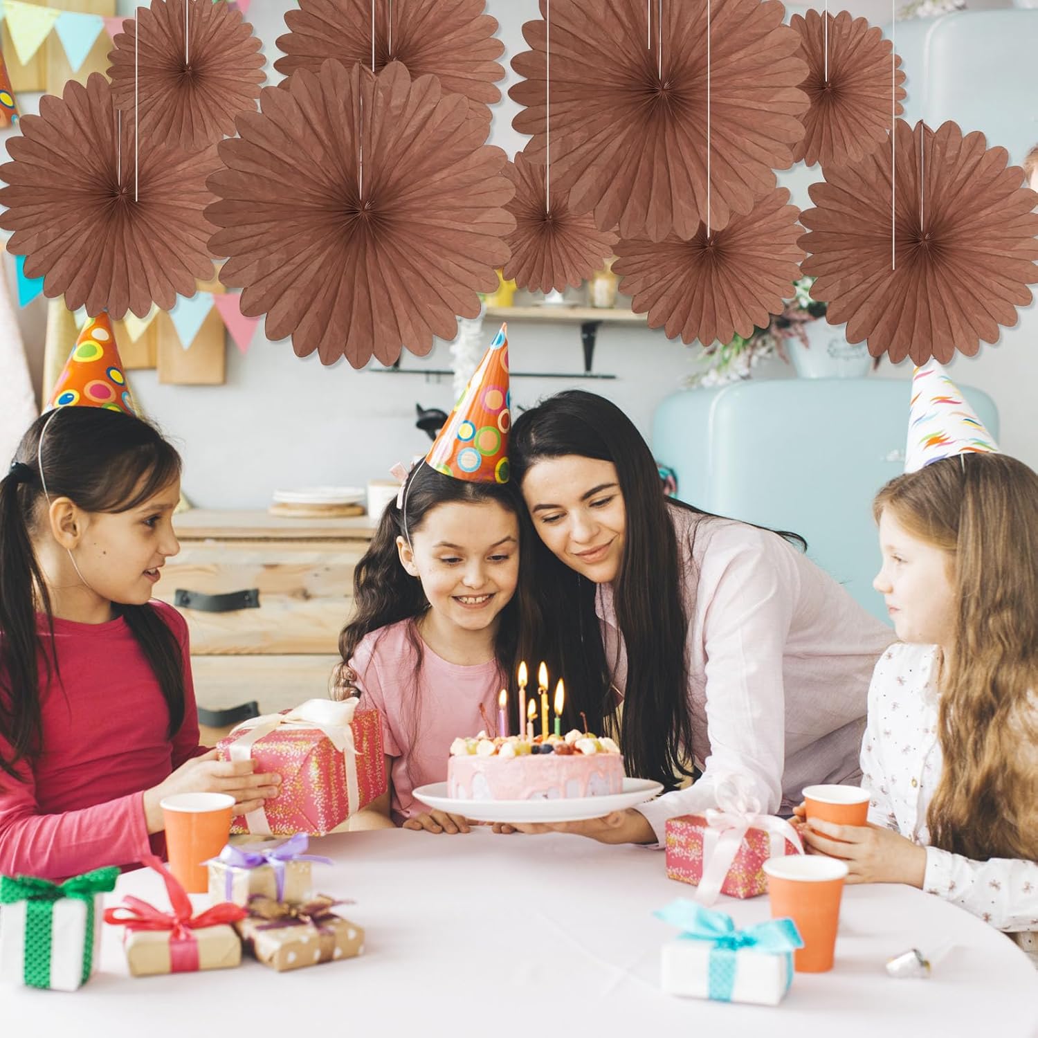 20 Pcs Deep Brown Hanging Paper Fan, Round Paper Fans Decorations Set for Weddings, Birthdays, Engagement, Bridal Shower, Baby Shower Event, Graduation, Party Supplies Decor