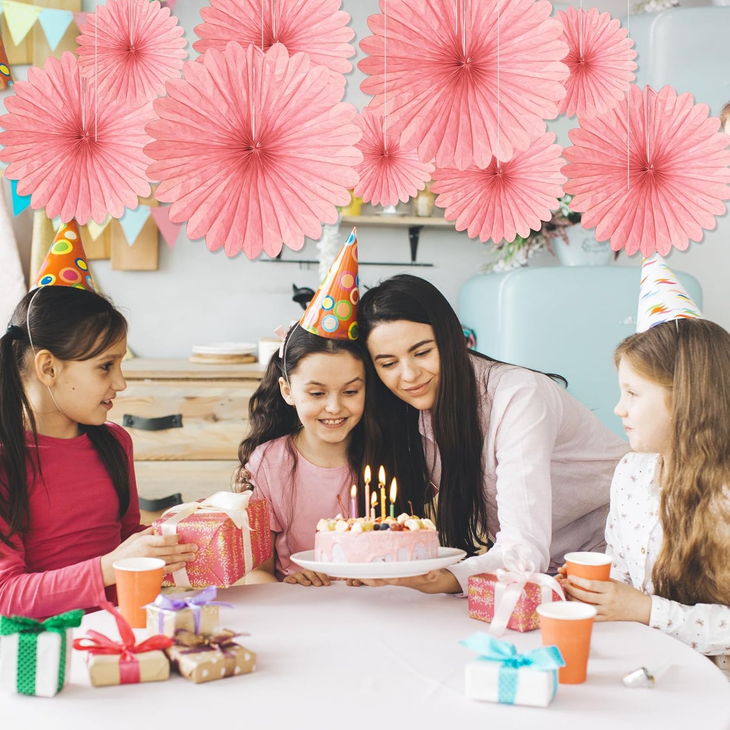- 【Easy to Assemble】These hanging paper fans have a hanging string attached and a paper clip. Just unfold the paper flower fan and fix it with the rope of the paper flower fan, then you can hang it to your favorite place and decorate your party perfectly in a few minutes.