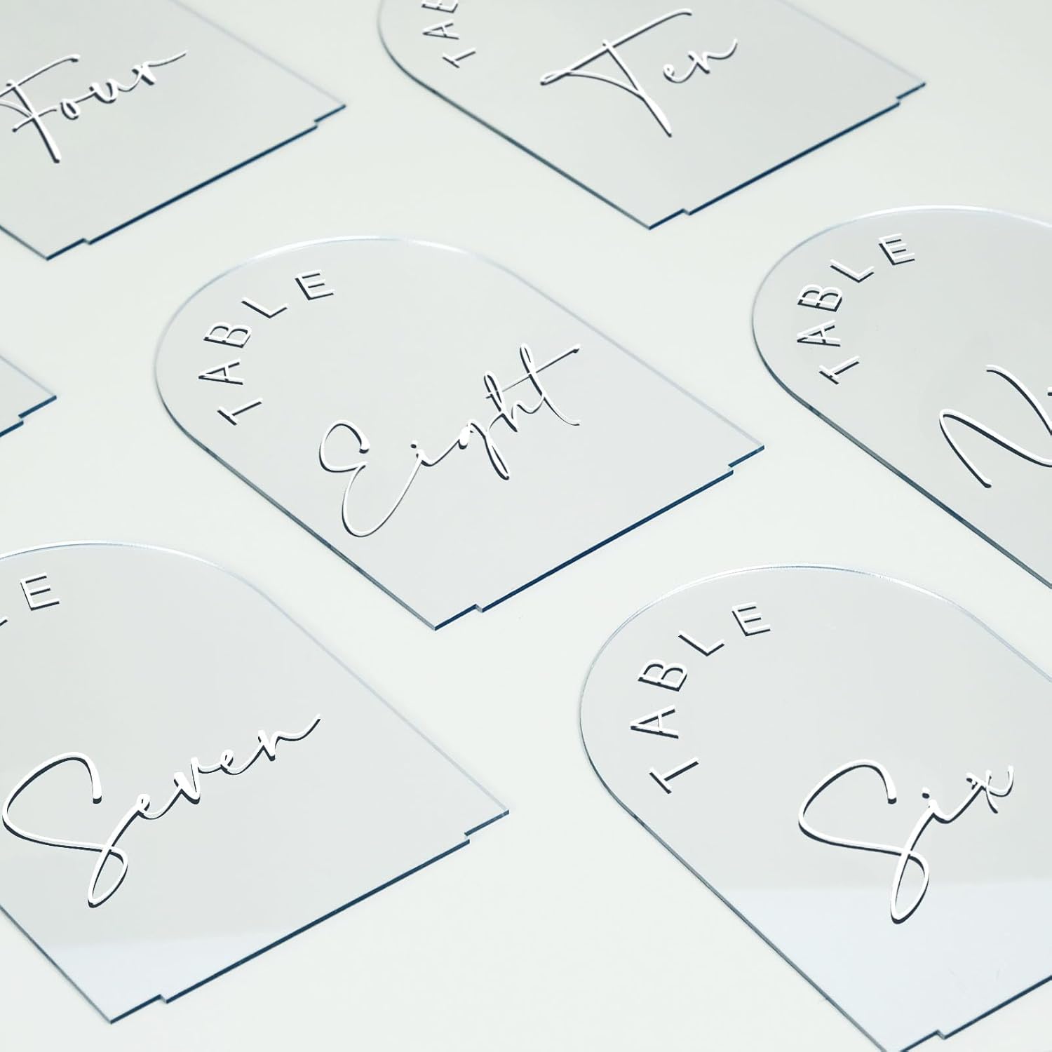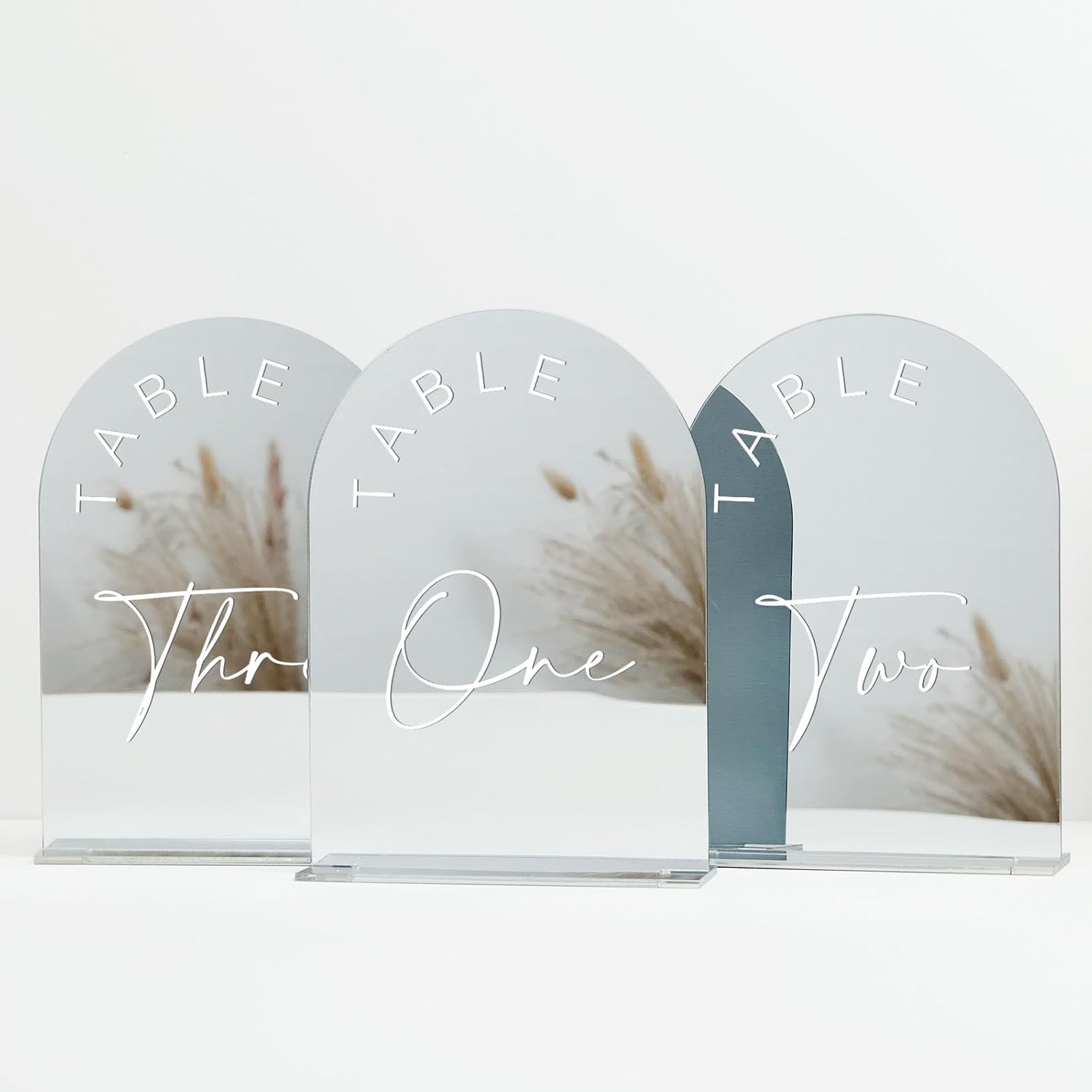 - SIMPLE & ELEGENT DESIGN: These modern minimalistic sliver arch acrylic table numbers are the perfect touch to add to your wedding. We love the sleek, clean lines of these arch acrylic table numbers, they are a beautiful wedding table centerpieces decorations, perfect for displaying on Tabletop Centerpiece.
