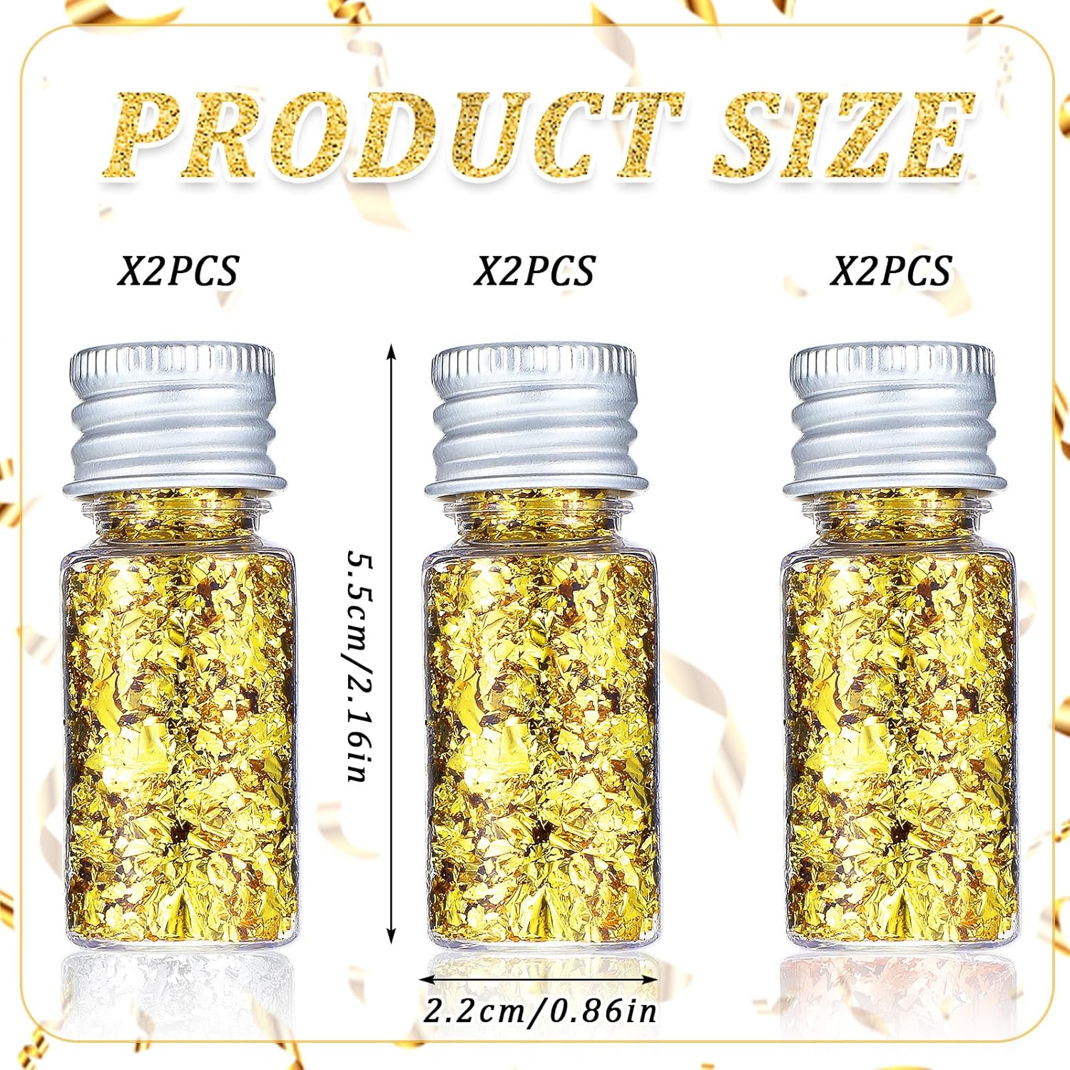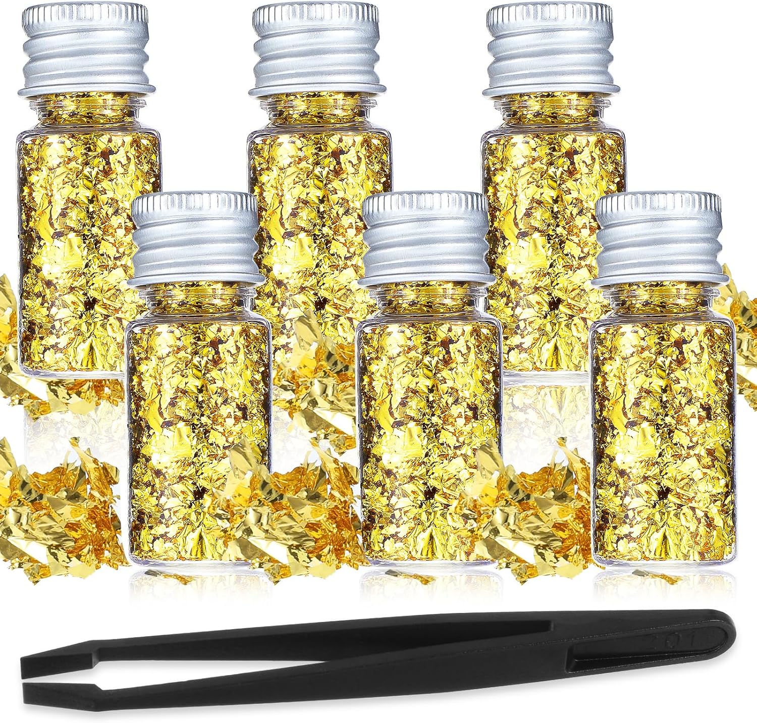 - WHAT YOU WILL GET: You will get 6 bottles of foil sheets for crafts with a clip, the bottle size is 2.09 × 0.87 inches, the clip length is 4.72 inches, gold leaf is enough to meet your various usage needs.
