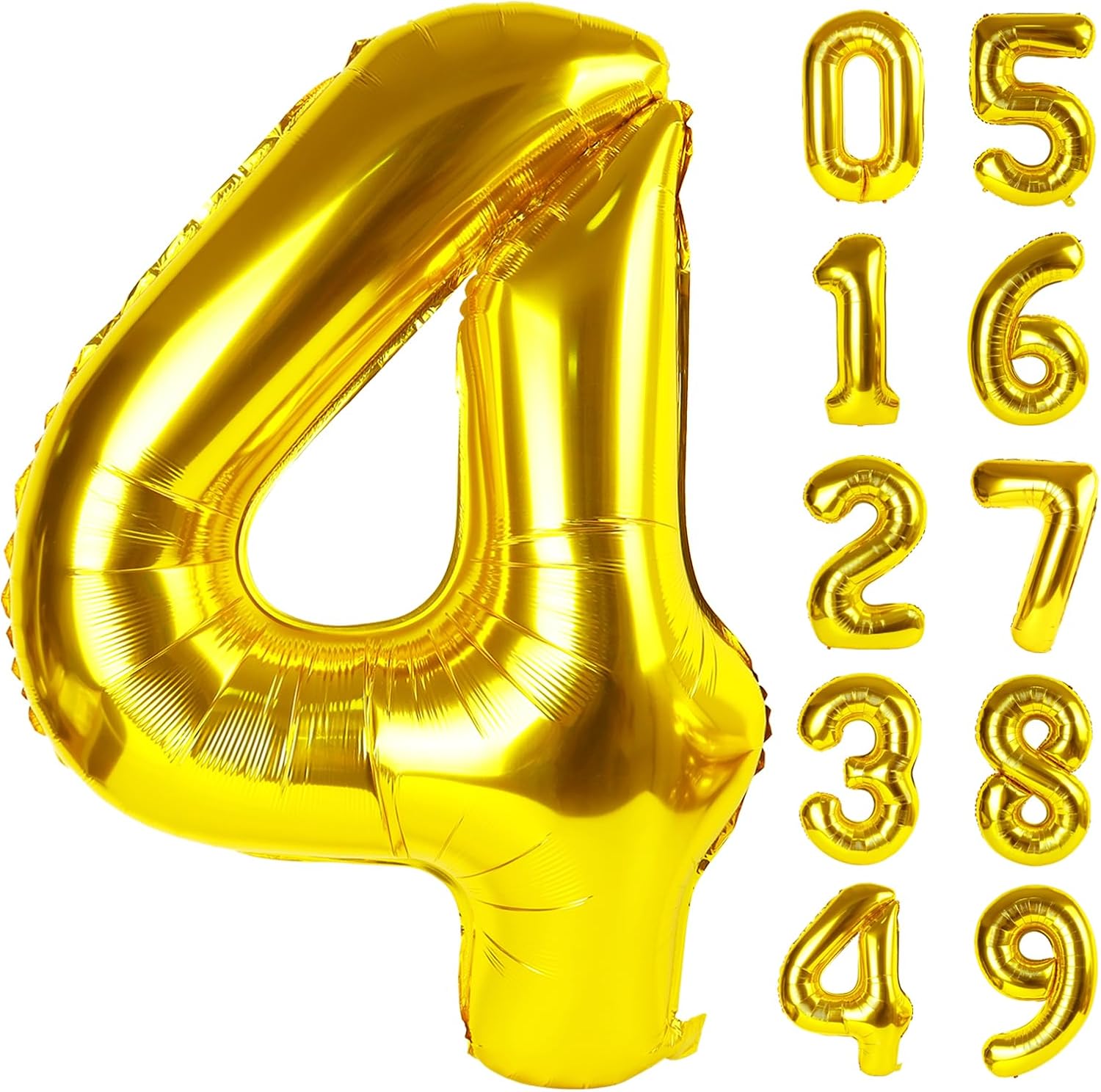 40 Inch Gold 4 Balloon for four Birthday,Glod Mylar Foil 4 Number Balloon Birthday Decorations for Girl Boy Toddler Baby 14th 24th 40th 44th Giant Number 4 Balloon Party Supplies