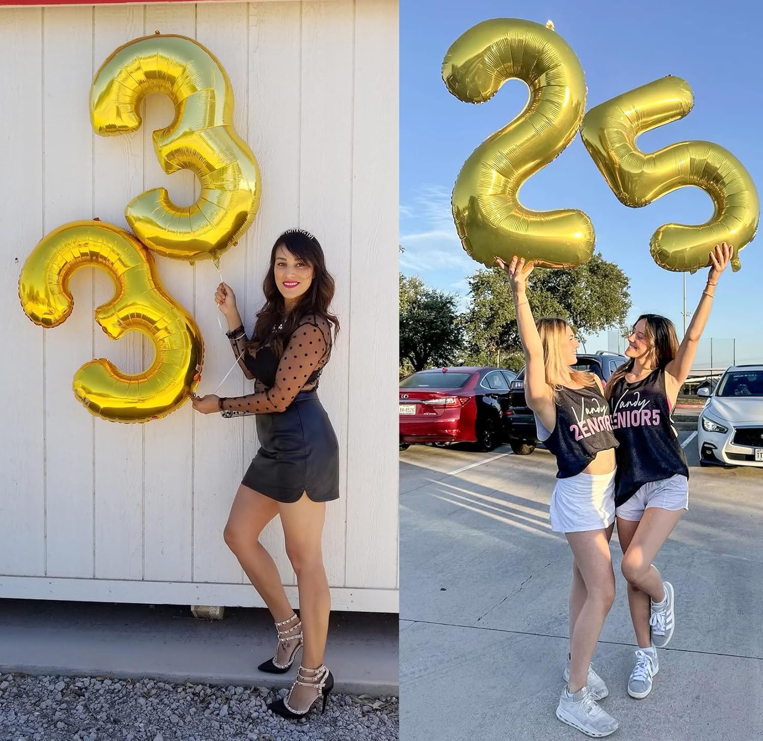 - 【Easy to Inflate & Deflate】The gold digital balloons only need to be filled with 90% air or helium. when you want to fill the balloon with air, just put the straw or insert the helium valve into the plastic valve at the bottom of the figure and blow slowly. When the balloon is fully inflated, remove the straw and squeeze the self-sealing plastic valve. If you want your balloon to float in the air, you can go to your local convenience store and fill it with helium.
