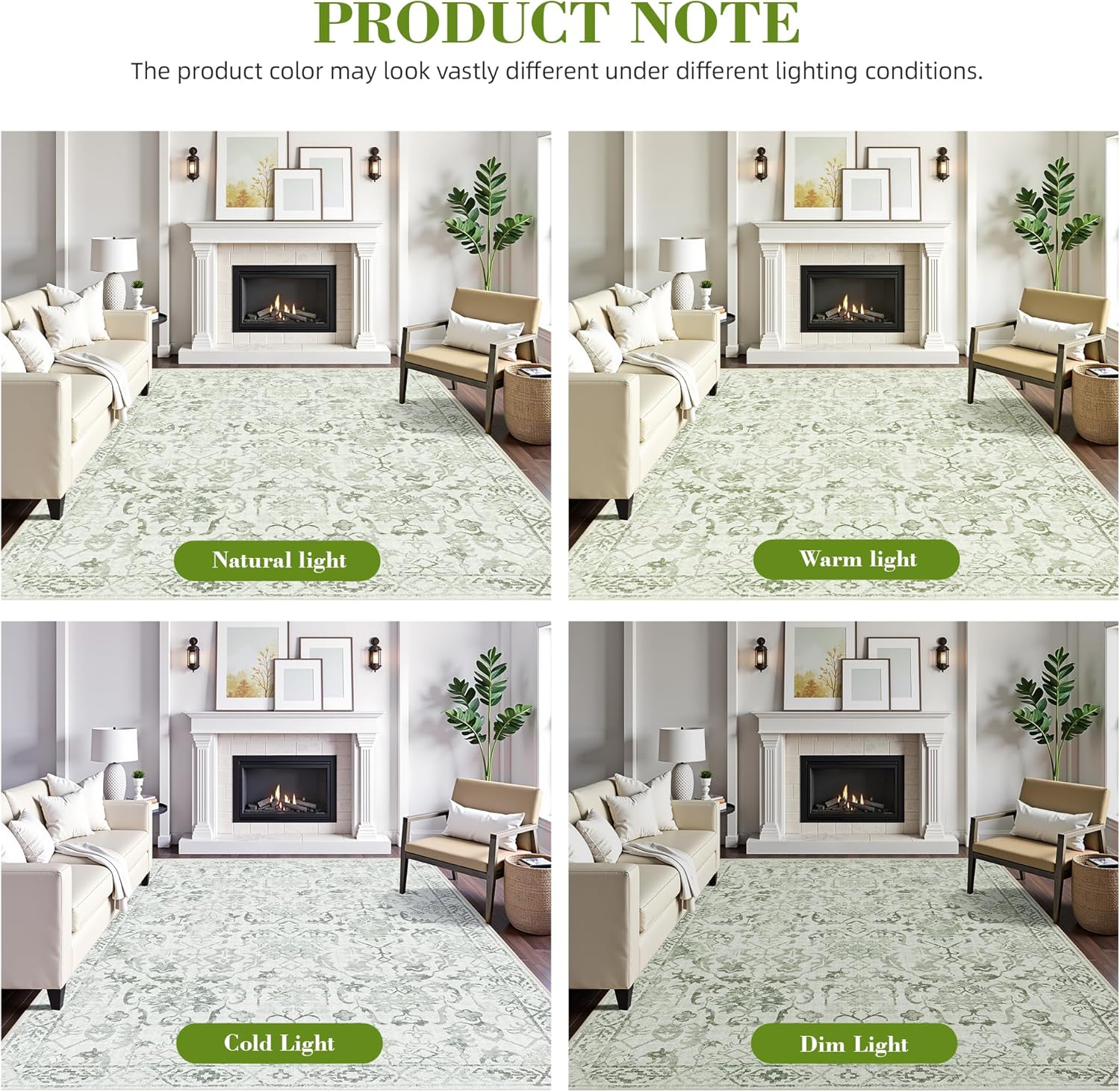 Deerly Sage Rugs 8x10 for Living Room Soft Non-Slip, Large Vintage Area Rug Retro Tribal Farmhouse Stain Resistant Carpet for Bedroom Dining Room Office Guest Room