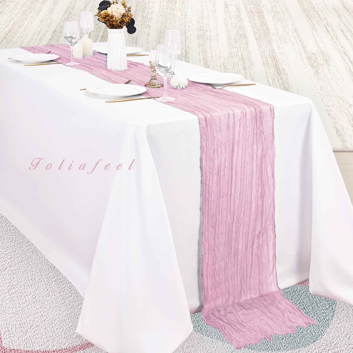Light Pink Cheesecloth Table Runner 12 Pack 10FT Rustic Gauze Fabric Cheese Cloth Table Runner for Wedding 20 x 120 Inch Long Bridal Baby Shower Table Decorations Boho Sheer Birthday Party Table Decor