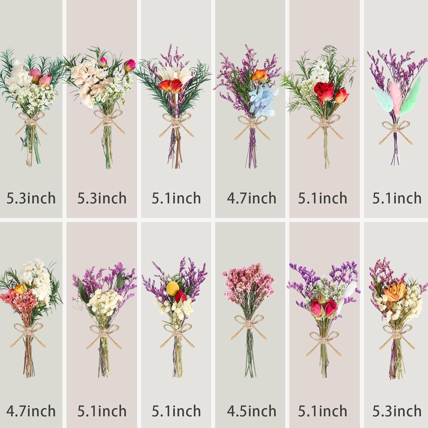 - Small and delicate: The bouquet is 5.3-5.9 inches (13-15 cm) long and delicate and lovely. The stems are firm and fit easily into vases. Compared with fresh flowers, dried flowers have a longer shelf life and are not easily wilted. Whether it is used for DIY handicrafts or packaged into mini bouquets, it can bring a lasting natural atmosphere to weddings, homes and other Spaces