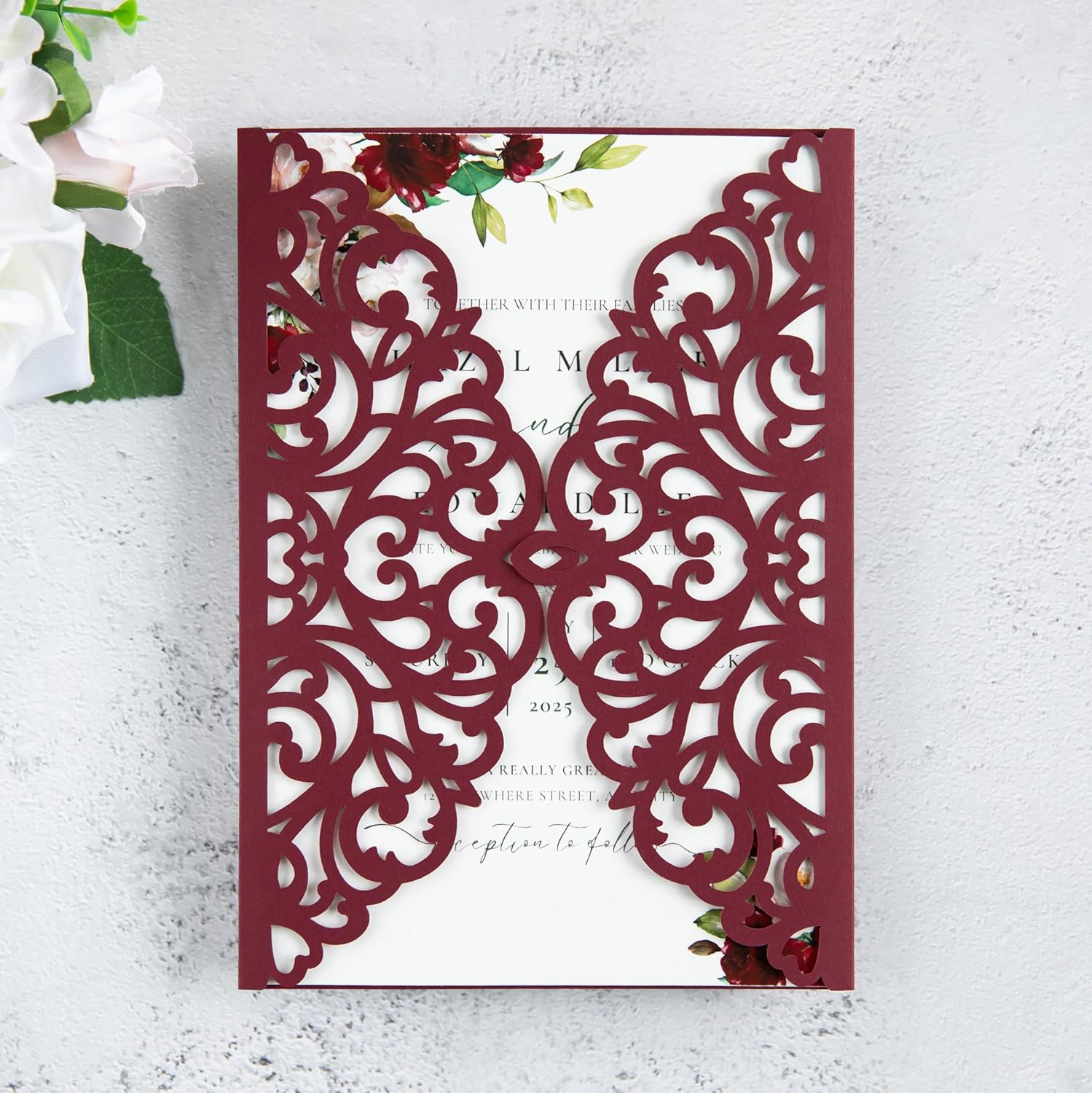 20Pcs Burgundy Laser Cut Invitation Cards With Blank Inner Sheets for Wedding Cards Bridal Shower Engagement Quinceanera Invitation (No Envelopes)